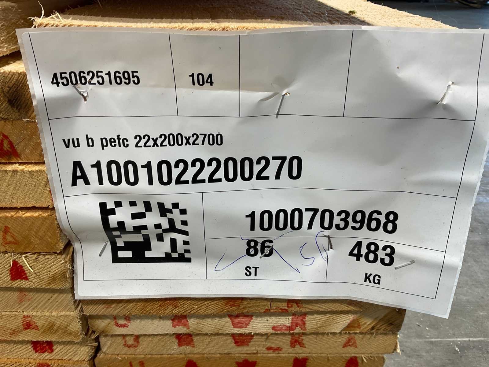 Vuren plank ruw 270x20x2,2 cm (54x)