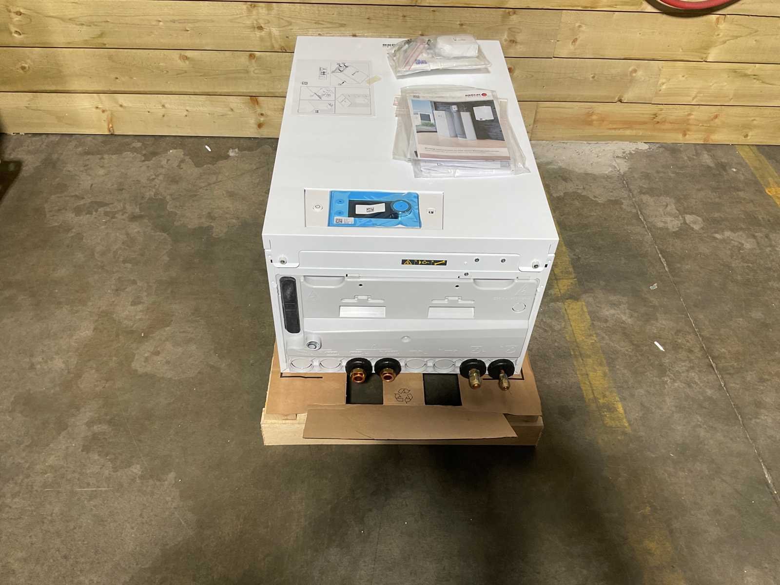 Lucht/water-warmtepomp 11kW met verwarmingselement. Buitendeel AWHP 8 MRB / Binnendeel BLWSPI48MH. Met geïntegreerde, weersafhankelijke verwarmingscircuitregeling voor 1 pompverwarmingscircuit, 3 mengcircuits, 2 warmwaterboilers en een geïntegreerd buffervat van 40 liter als hydraulische scheider. Geïntegreerde IWR Alpha met volledig grafisch kleurendisplay met menugestuurde weergave. Uitgebreide hybride functies geïntegreerd. Fotovoltaïsche functie (PV). Buitentemperatuursensor inbegrepen. Gevuld met koudemiddel R410A. Max. aanvoertemperatuur +60 °C. Min. buitentemperatuur -20 °C. Ingebouwde inschakelstroombegrenzer via frequentieomvormer. Bijzonder stille werking dankzij geluids- en trillingsontkoppeling van compressor en koelunit. Geen risico op bevriezing van de buitenunit. Expansievat van 10 liter, manometer, veiligheidsventiel en automatische ontluchter. Model: 7695635 Product type: Lucht-water warmtepomp Gewicht: 135,94kg