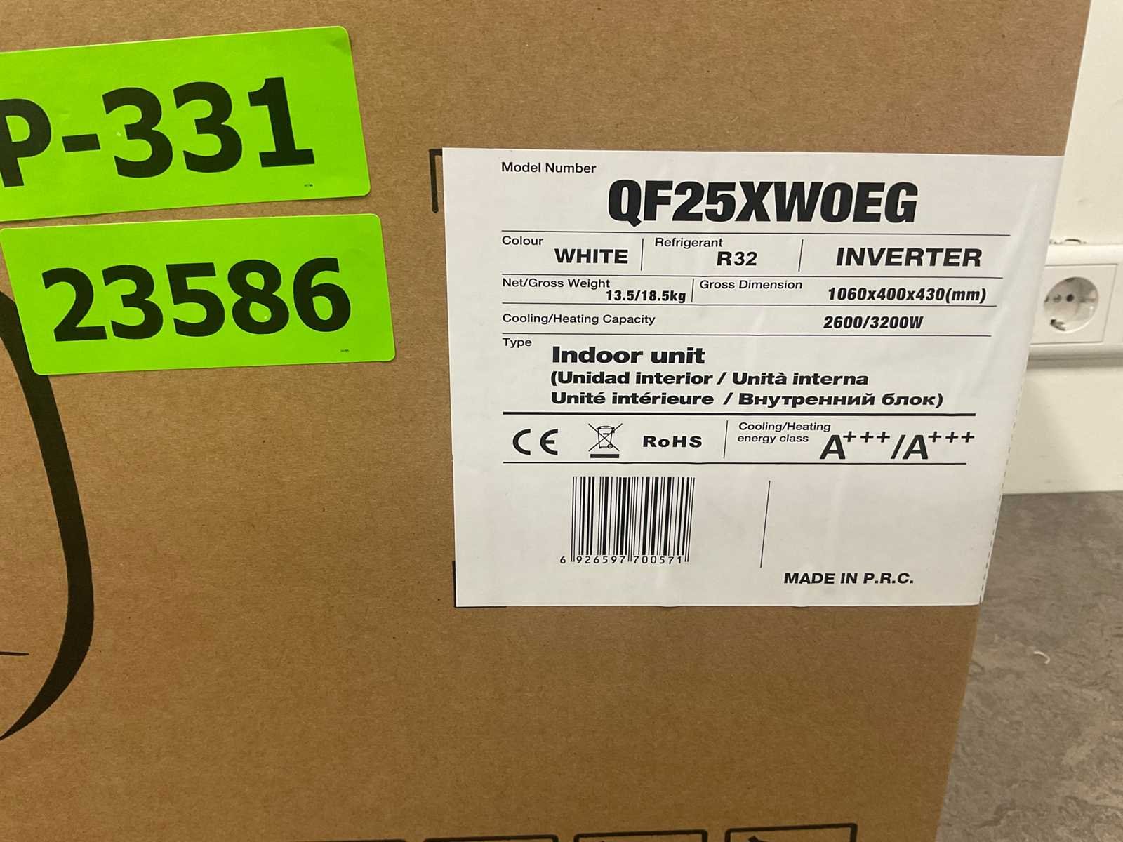 Deze split-unit airconditioner is geschikt voor zowel koelen als verwarmen en bestaat uit een binnenunit en een buitenunit met invertertechnologie en het R32-koudemiddel. Met een koelvermogen van 2,6 kW en een verwarmingsvermogen van 3,2 kW is dit model geschikt voor kleinere tot middelgrote ruimtes tot circa 20–25 m² (SEER 8,8 / SCOP 6,0). Deze serie staat bekend om zijn schone-luchttechniek met verse luchttoevoer en meervoudige filtratie. Hierdoor wordt niet alleen de temperatuur geregeld, maar ook de luchtkwaliteit merkbaar verbeterd. Binnenunit (QF25XWOEG): afmetingen: 1060 × 400 × 430 mm, geluidsniveau: 53dB, luchtvolume: 580 m³/u, vermogensinput: 20W, stroominput: 0,2A, met een gewicht (netto) van: 13,5 kg. Buitenunit (QF25XWOEW): afmetingen: 940 × 385 × 630 mm, geluidsniveau (sound power): 60 dB, Max. persdruk: 4,15 MPa, Max. zuigdruk: 1,6 MPa, met een gewicht (netto) van: 33 kg en een beschermingsklasse van: IPX4. Koelcapaciteit (BTU/h): 9000 Koelcapaciteit (W): 2600 Koelcompressor: true Verwarmingscapaciteit: 3200 Type koudemiddel: R32 Split-unit: true Aansluiting: 220-240V Eigen gewicht: 46,5kg