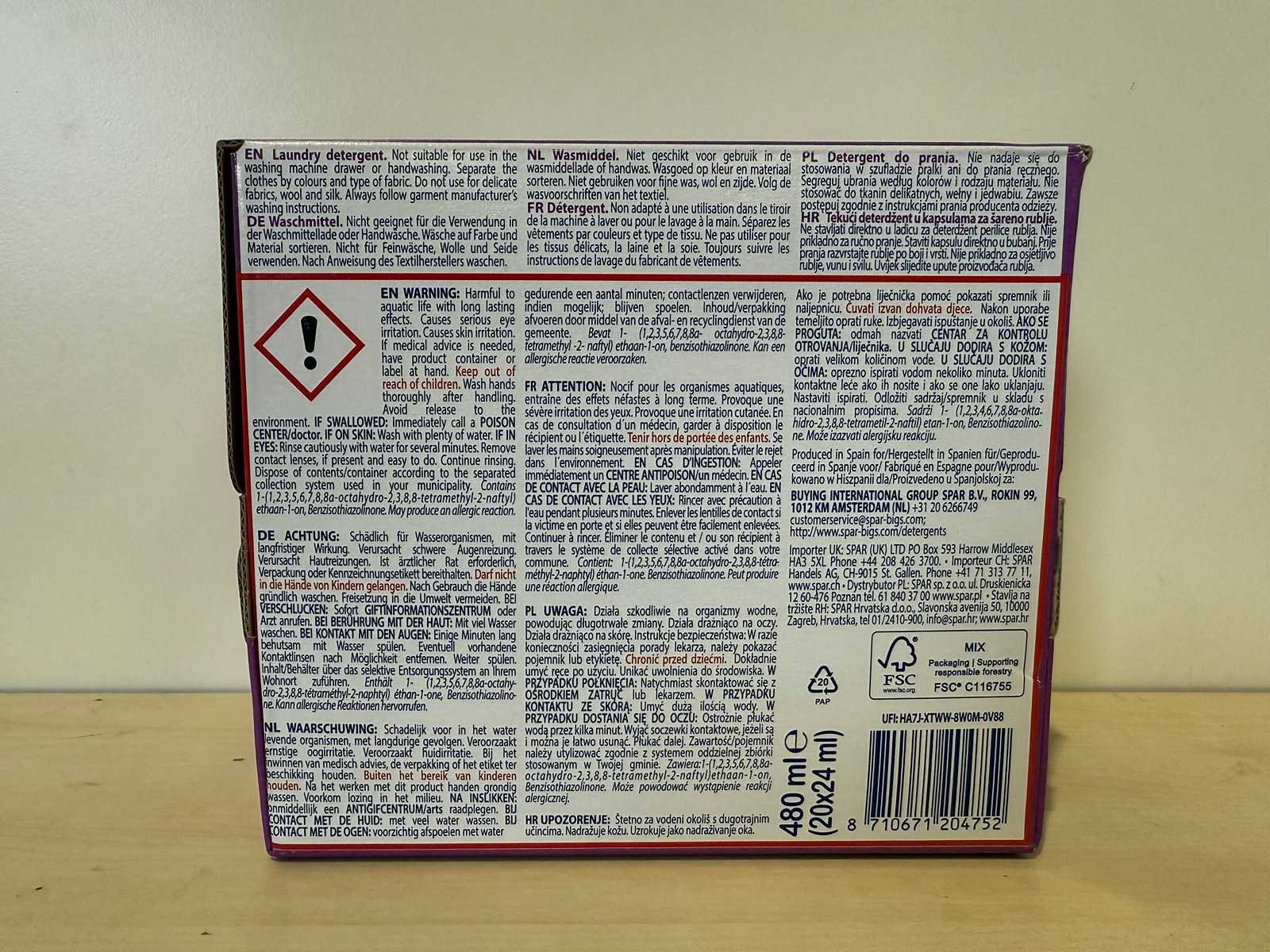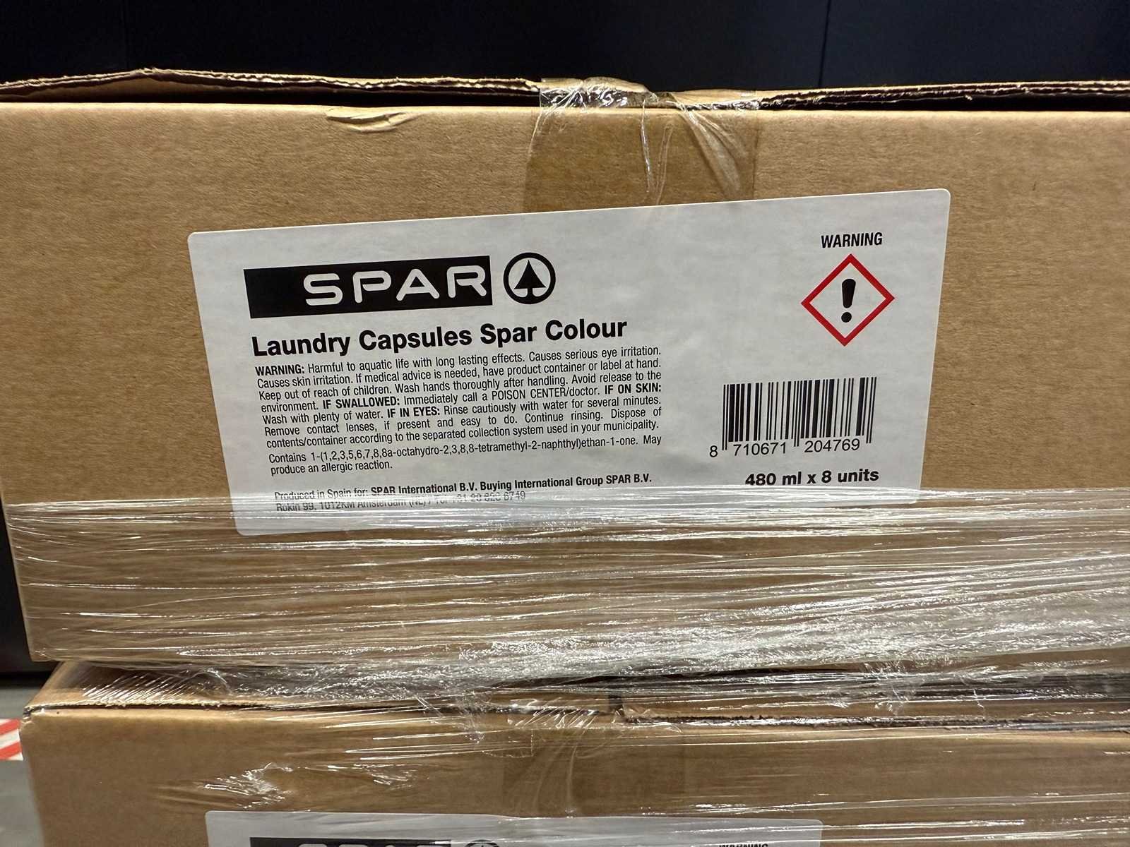 Deze kavel bestaat uit Spar Colour Waspods. Het betreft een kavel met overstockgoederen, dus de items zijn nieuw in doos. De kavel bestaat uit 48 omdozen met ieder 8 verpakkingen, die ieder 20 waspods bevatten. In totaal bestaat de kavel dus op 7680 waspods. Bezorgtermijn 14 dagen Merk: Spar Model: Colour