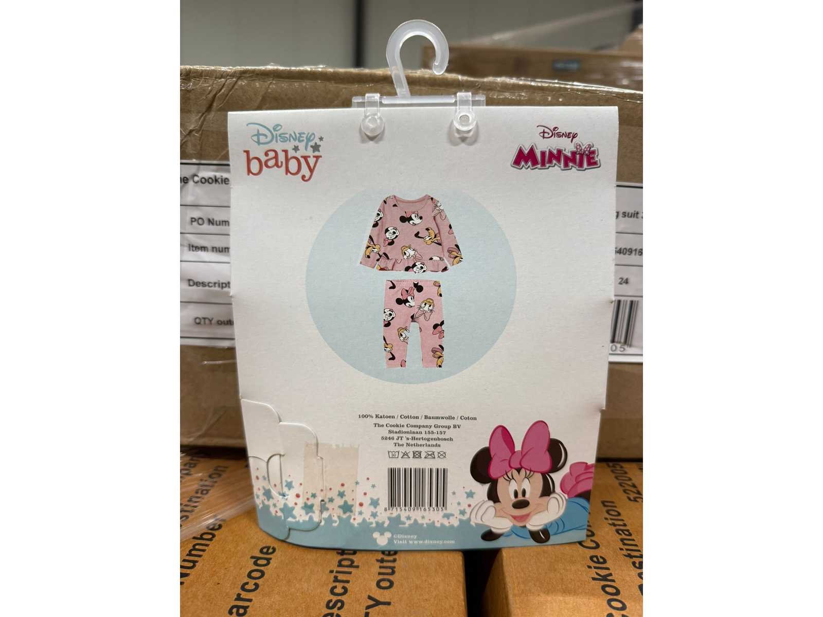 Partij van 100 stuks originele Disney baby- en kinderkleding (officieel trademark). De mix bevat sokken (maat 16/18 & 19/22), pyjama’s, rompers, schortjes en joggingpakken in kledingmaten 62/68, 74/80 en 86/92. Telling per kledingstuk: Een 3-pack telt als 3 stuks, een 2-pack als 2 stuks. Bij setjes (zoals pyjama’s) worden broek en shirt apart geteld. Ideaal voor wederverkoop, outlet of marktkraam. Bestaande uit: Baby- Kinderkleindg 1e: Pyjama 2e: Sokken 3e: Jogginspak 4e: Schort 5e: Rompers