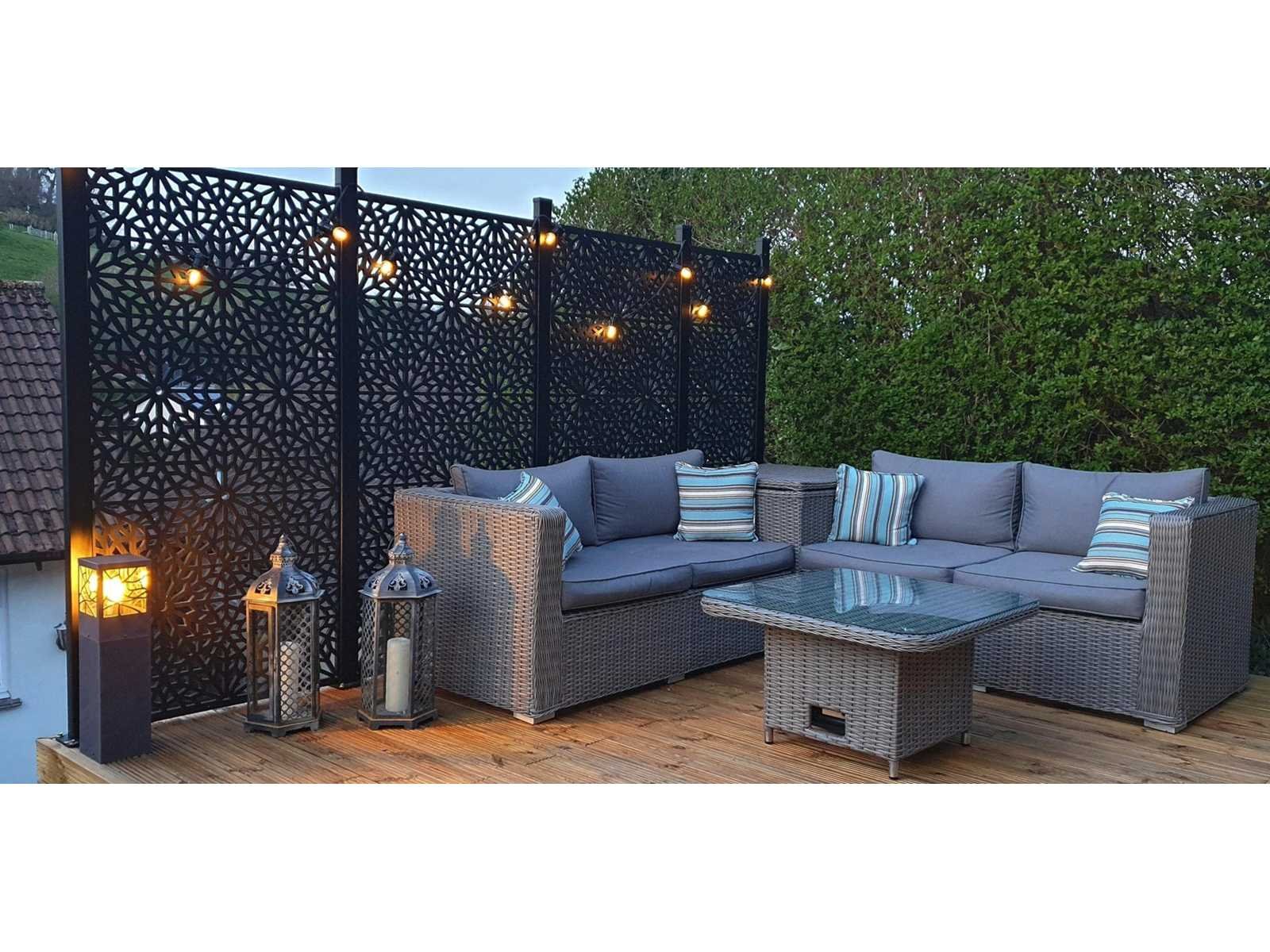De Moucharabiya is het perfecte buitenscherm om stijl en privacy aan uw tuin toe te voegen. Geïnspireerd door het traditionele ontwerp van ramen uit de Arabische architectuur, vormt het een prachtige aanvulling op uw tuin. Merk: Screens With Envy Model: Moucharabiya Product type: scherm Kleur: Zwart Gewicht: 10kg Lengte: 90cm Breedte: 1.6cm Hoogte: 180cm Materiaal: Composiet