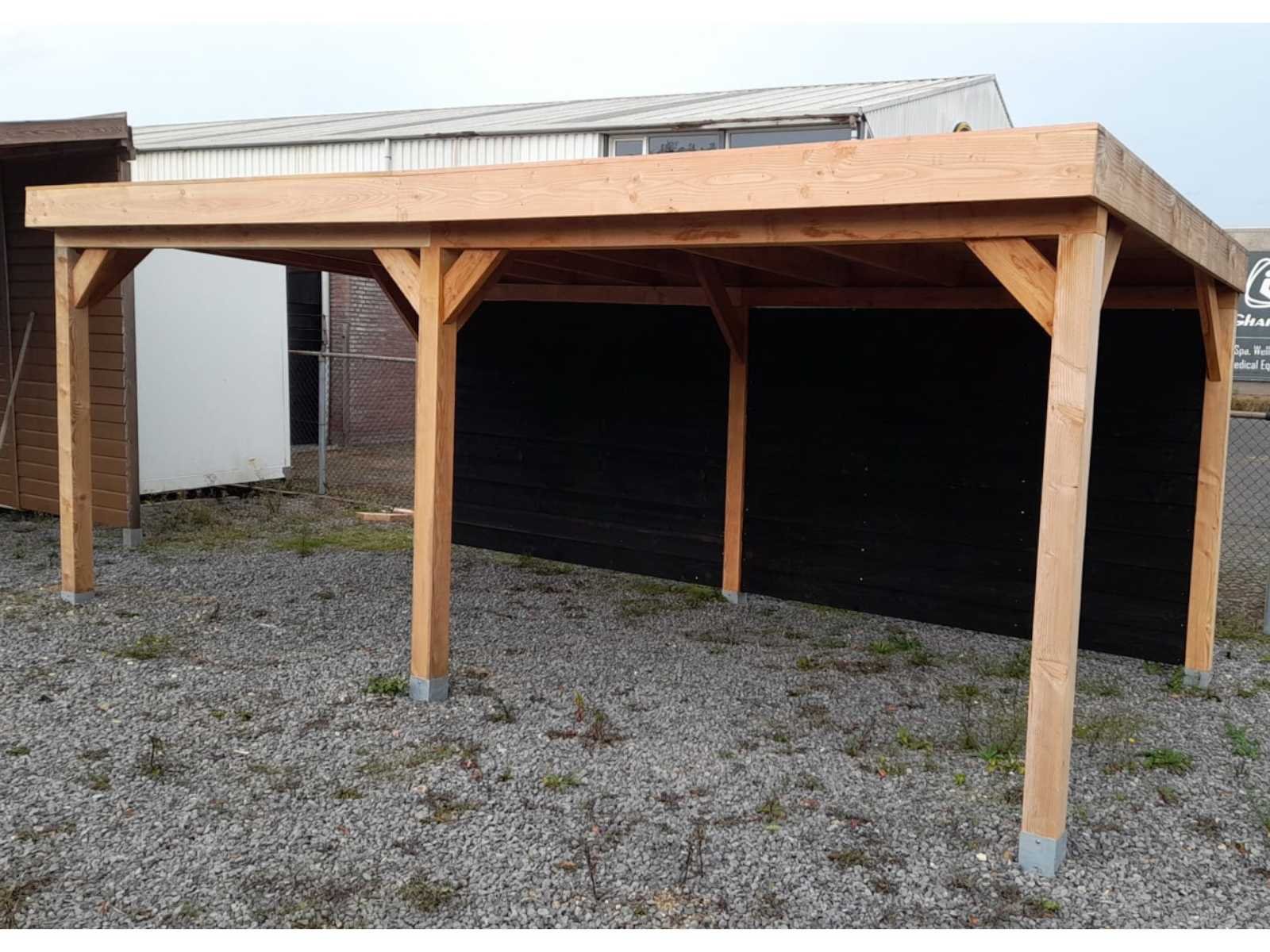 Maat van het dak: 600x300cm. Materiaal: Douglas fijnbezaagd. Onderdelen: achterwand Zweeds rabat, zwart. Geïmpregneerd. Dakplanken: 18mm, Dakbedekking: dakleer. Doorloophoogte: 215cm. Voorzien van montagemateriaal en handleiding. Overkapping wordt als een bouwpakket geleverd. De afmetingen van dit pakket zijn: 400x125x100 cm, 750 kg. Product type: met Zweeds rabat Gewicht: 750kg Lengte: 300cm Breedte: 600cm Materiaal: Douglas fijnbezaagd