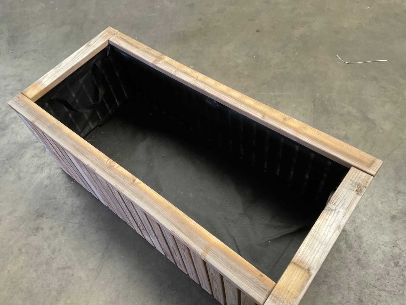 Merk: Garlux Model: Rechthoek Gewicht: 20kg Lengte: 107cm Breedte: 47cm Hoogte: 40cm Diepte: 35cm Materiaal: Vuren geimpregneerd