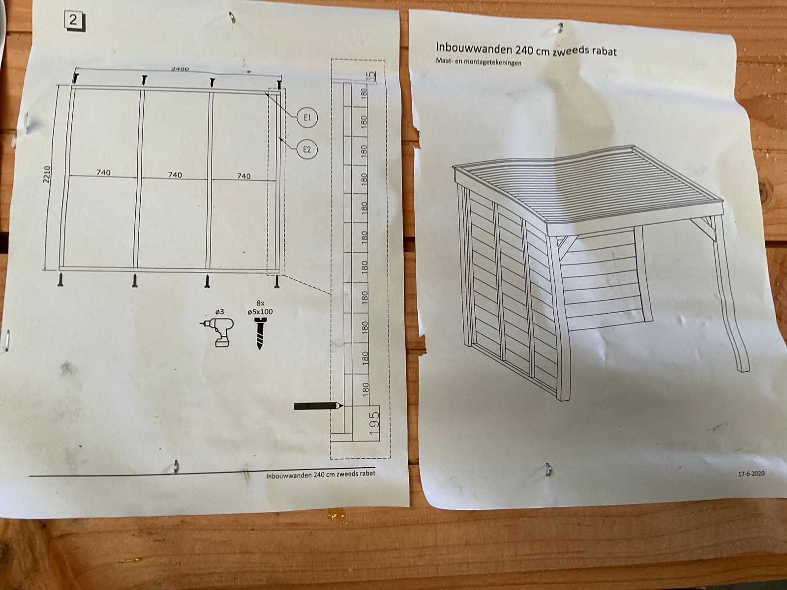 Incl. handeling en bevestigingsmateriaal. Model: Zweedsrabat Gewicht: 150kg Lengte: 240cm Hoogte: 221cm Materiaal: Douglas