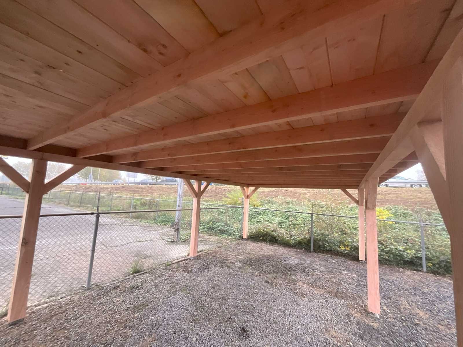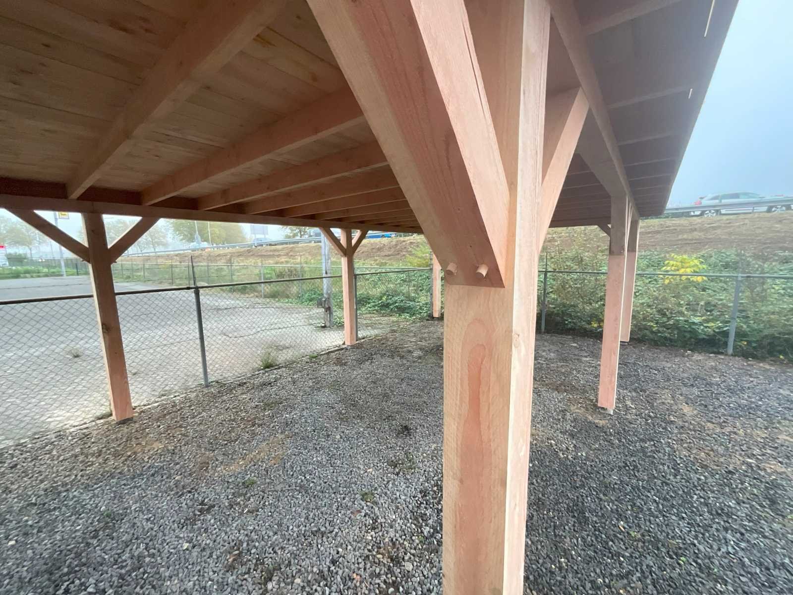 Specificaties Buitenverblijf: Palen: 150x150 mm Liggers: 120x120 mm Dakbalken: 50x150 mm Dakplanken: 18 mm dik Het buitenverblijf wordt geleverd als bouwpakket, op maat gezaagd, inclusief bevestigingsmateriaal en een handleiding. Afmeting: 1500x400 cm (buitenmaat dakrand) Aantal palen: 14 stuks Dakbedekking en paalhouders: Niet inbegrepen Hoogte: Doorloophoogte: 225 cm Totale hoogte: 257 cm Breedte en diepte: De opgegeven maat betreft de dakmaat. Dakoversteek: Links, rechts en voorzijde: 30 cm Achterzijde: Geen oversteek Afmetingen pakket: 125x500x140 cm (BxLxH) Gewicht: 2400 kg Model: Vrijstaand Gewicht: 2400kg Lengte: 1800cm Breedte: 400cm Hoogte: 257cm Materiaal: Douglas