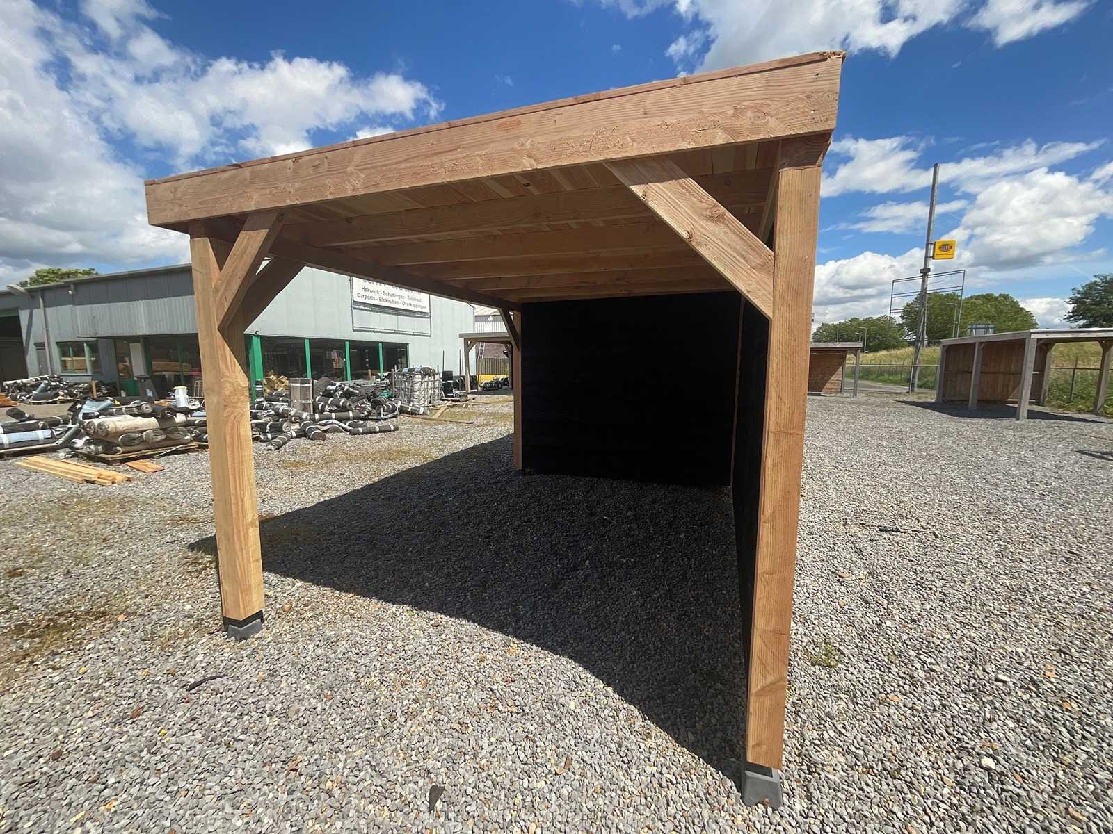 O Afmeting dak: 650x400cm o Afmeting berging: 250x400 cm. o Doorloop hoogte 225cm o Totaal hoogte 245 naar 240 cm o Bestaande uit: o Palen: Douglas fijn bezaagd 15x15 cm ( hoekpaal overkapping ) o Construktiepalen 12x12 cm Douglas fijnbezaagd o Draagliggers: Douglas fijn bezaagd 12x12 cm o Dakbalken: Douglas fijn bezaagd 5x15 cm en dakplanken: 18 mm dik o Dakafwerking : Dakleer o Voorzien van bouwbeschrijving en bevestigingsmateriaal. o Deur: met hang- en sluitwerk, 100 cm breed. o Het kavel wordt als een bouwpakket geleverd, zonder paalhouders. o o Afmeting van het pakket: 425x125x100 cm, 950 kg Product type: Douglas met Zweeds rabat Gewicht: 950kg Lengte: 650cm Breedte: 400cm Hoogte: 245cm Materiaal: Douglas