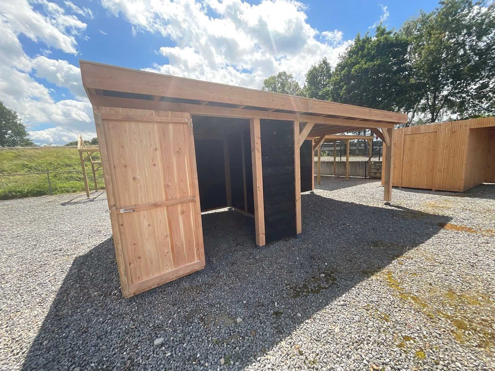 Afmeting dak: 550x300cm Afmeting berging: 250x275 cm. Doorloop hoogte 225cm totaal hoogte 245 naar 240 cm Bestaande uit: Palen: Douglas fijn bezaagd 15x15 cm ( hoekpaal overkapping ) Construktiepalen 12x12 cm Douglas fijnbezaagd Draagliggers: Douglas fijn bezaagd 12x12 cm Dakbalken: Douglas fijn bezaagd 5x15 cm en dakplanken: 18 mm dik Dakafwerking : Dakleer Voorzien van bouwbeschrijving en bevestigingsmateriaal. Deur: met hang- en sluitwerk, 100 cm breed. Het kavel wordt als een bouwpakket geleverd, zonder paalhouders. Totaal afmeting dak : 550x300 cm Afmeting van het pakket: 425x125x100 cm, 950 kg Product type: Douglas met Zweeds rabat Gewicht: 950kg Lengte: 550cm Breedte: 300cm Hoogte: 245cm Materiaal: Douglas