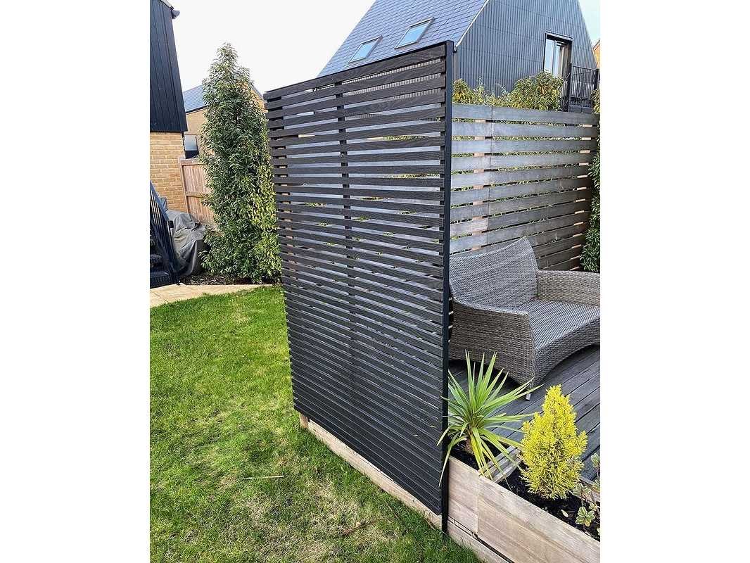 Dit composiet scherm heeft de perfectie balans tussen privacy en moderne decoratie Merk: Screens With Envy Model: Slat Product type: Scherm Kleur: Zwart Gewicht: 20kg Lengte: 90cm Breedte: 32cm Hoogte: 180cm Materiaal: composiet