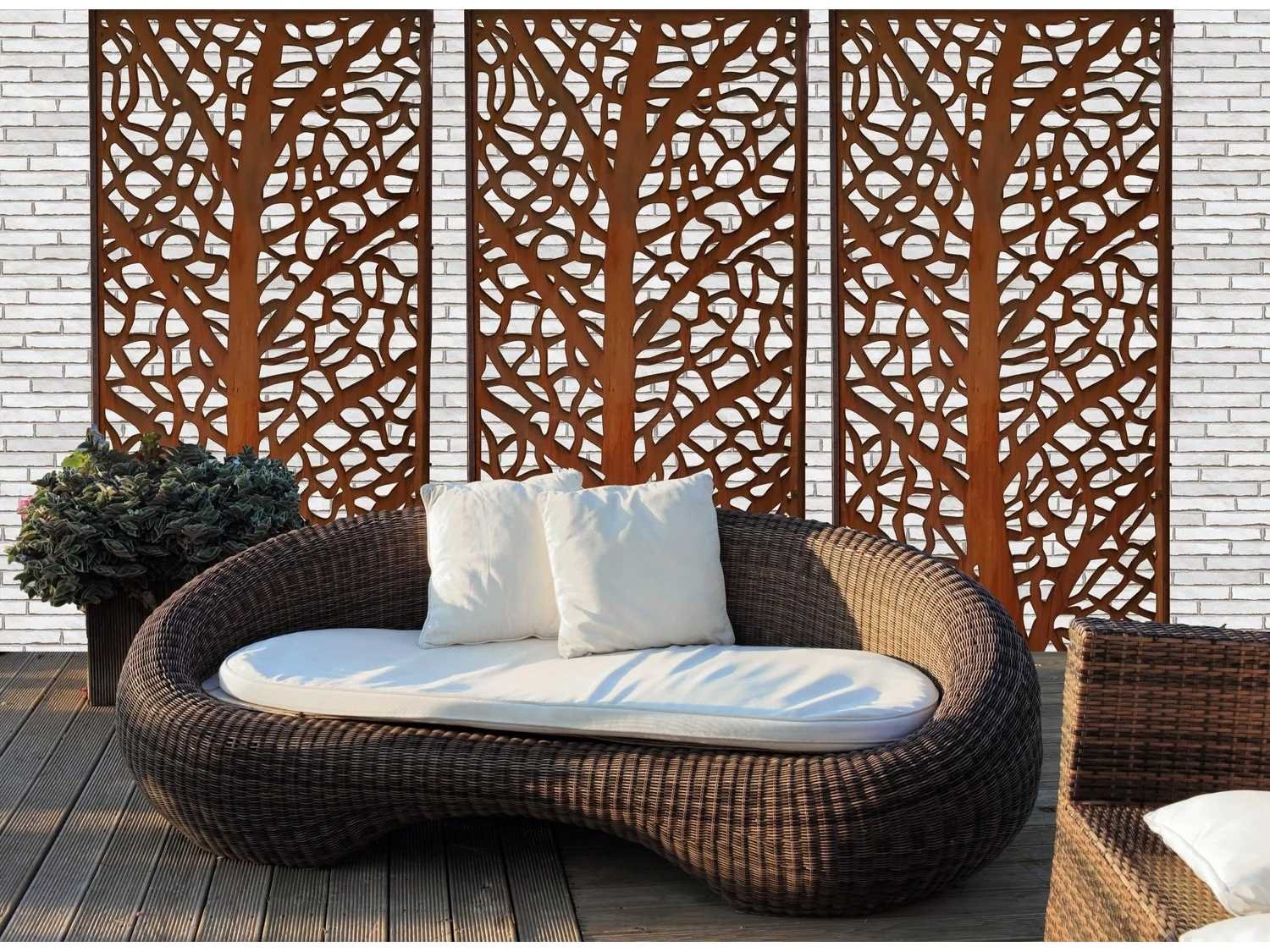 L'Arbre brengt de tijdloze elegantie van botanische patronen in uw tuin. We hebben dit oorspronkelijk ontworpen als een bladpatroon, maar veel van onze klanten zien het als een boom. Hoe u het ook bekijkt, geniet van dit chique patroon zonder u zorgen te maken over onderhoud. Geïnspireerd door de mooiste patronen in de natuur, biedt dit Corten tuinscherm stijlvolle privacy, zonder al uw zonlicht te blokkeren. Gebruik het als een losstaand tuinelement (door onze Corten palen toe te voegen ) of langs borders om uw schutting een nieuwe look te geven. Merk: Screens With Envy Model: L'Arbre Product type: Scherm Kleur: Roest Gewicht: 30kg Lengte: 90cm Breedte: 1cm Hoogte: 180cm Materiaal: Metaal