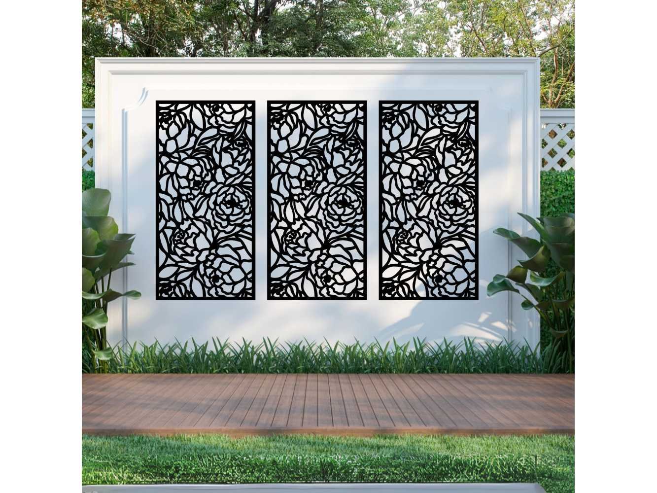 Het Bloom Tuinscherm is een adembenemende toevoeging aan uw tuin. Het bloemenpatroon, bestaande uit zachte organische patronen, geeft een frisse kijk op de wereld van tuinschermen. Dit eigentijdse trellis, gemaakt van composiethout, biedt de warmte en luxe van een houten afwerking, met de prestaties en duurzaamheid van kunststof. Merk: Screens With Envy Model: Bloom Product type: Scherm Kleur: zwart Gewicht: 10kg Lengte: 90cm Breedte: 0.5cm Hoogte: 180cm Materiaal: composiet