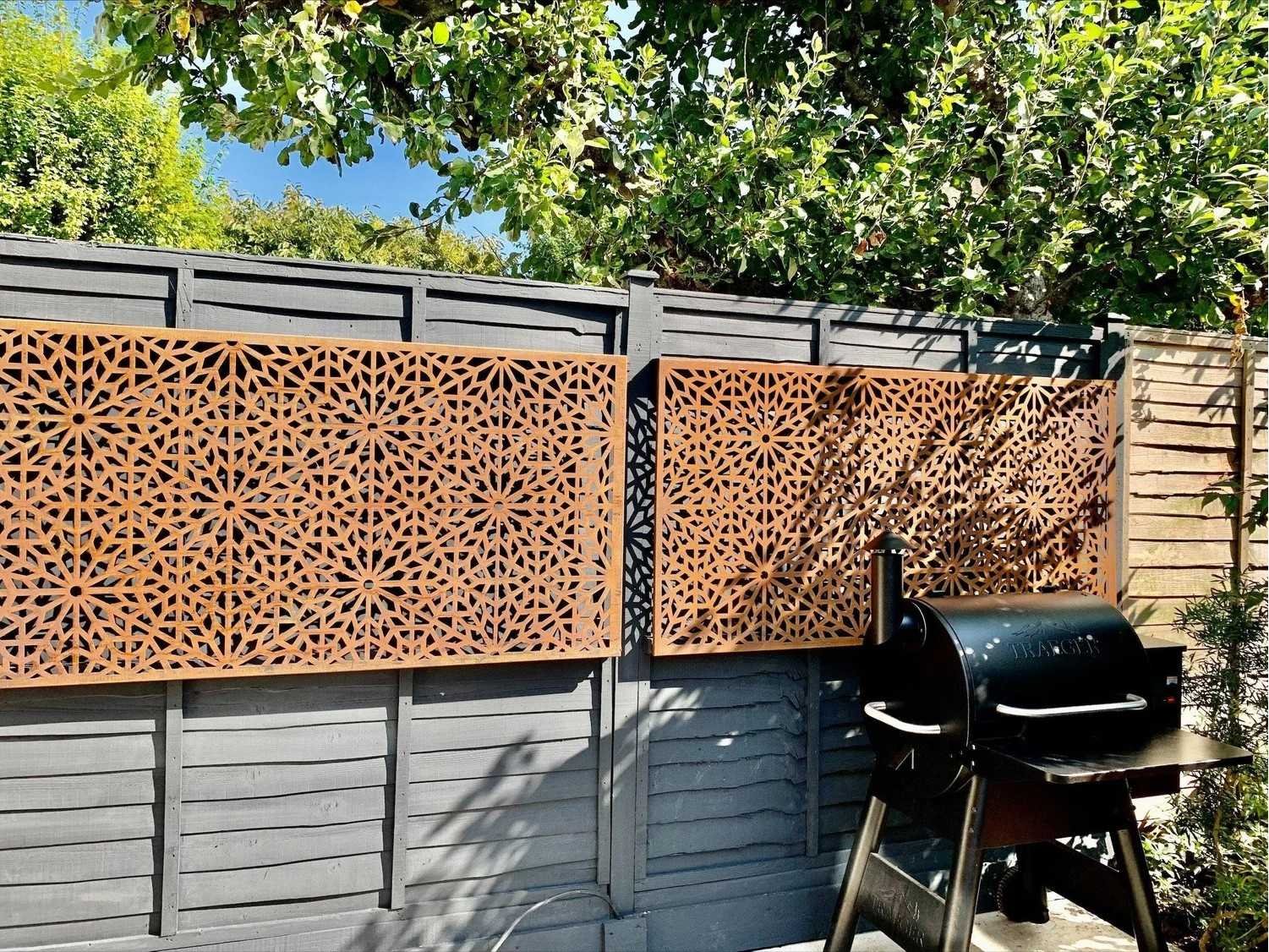 De Moucharabiya is het perfecte buitenscherm om stijl en privacy aan uw tuin toe te voegen. Geïnspireerd door het traditionele ontwerp van ramen uit de Arabische architectuur, vormt het een prachtige aanvulling op uw tuin. Merk: Screens Wiht Envy Model: Moucharabiya Product type: scherm Kleur: Roest Gewicht: 30kg Lengte: 90cm Breedte: 1cm Hoogte: 180cm Materiaal: metaal