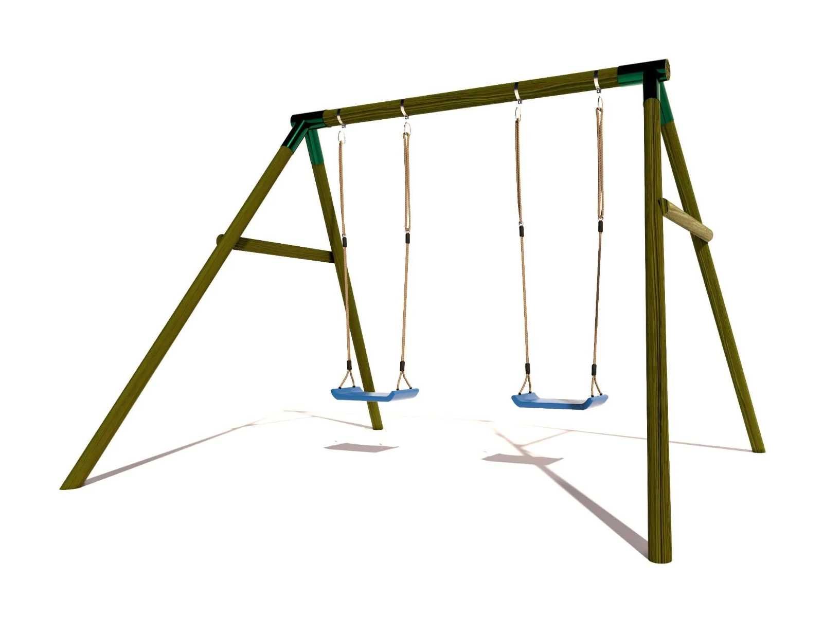 Houten dubbele schommel met 2 kunststof schommels