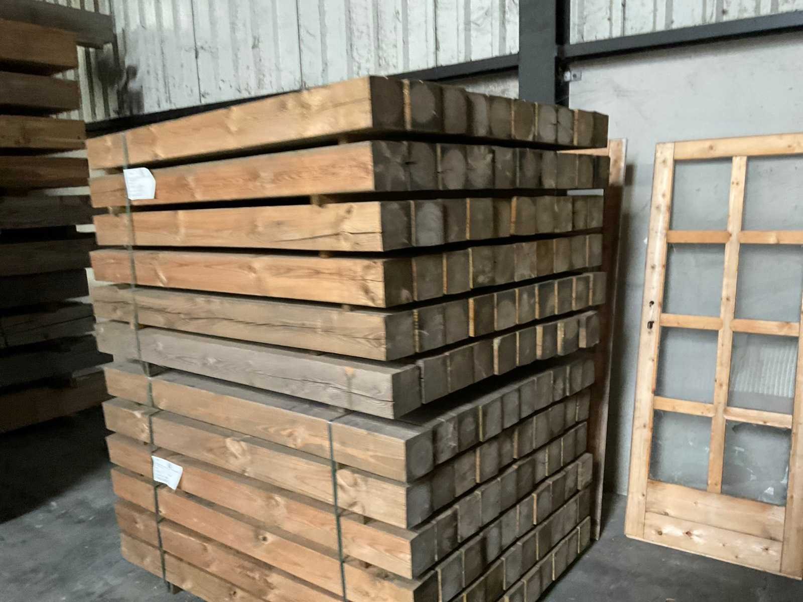 Grenen geïmpregneerde tuinpalen 155x12x12 cm, zie de foto's voor meer details. Houtsoort: Grenen geimpregneerd Breedte: 120mm Hoogte: 120mm Kopmaat: 120x120mm Gewicht: 7kg