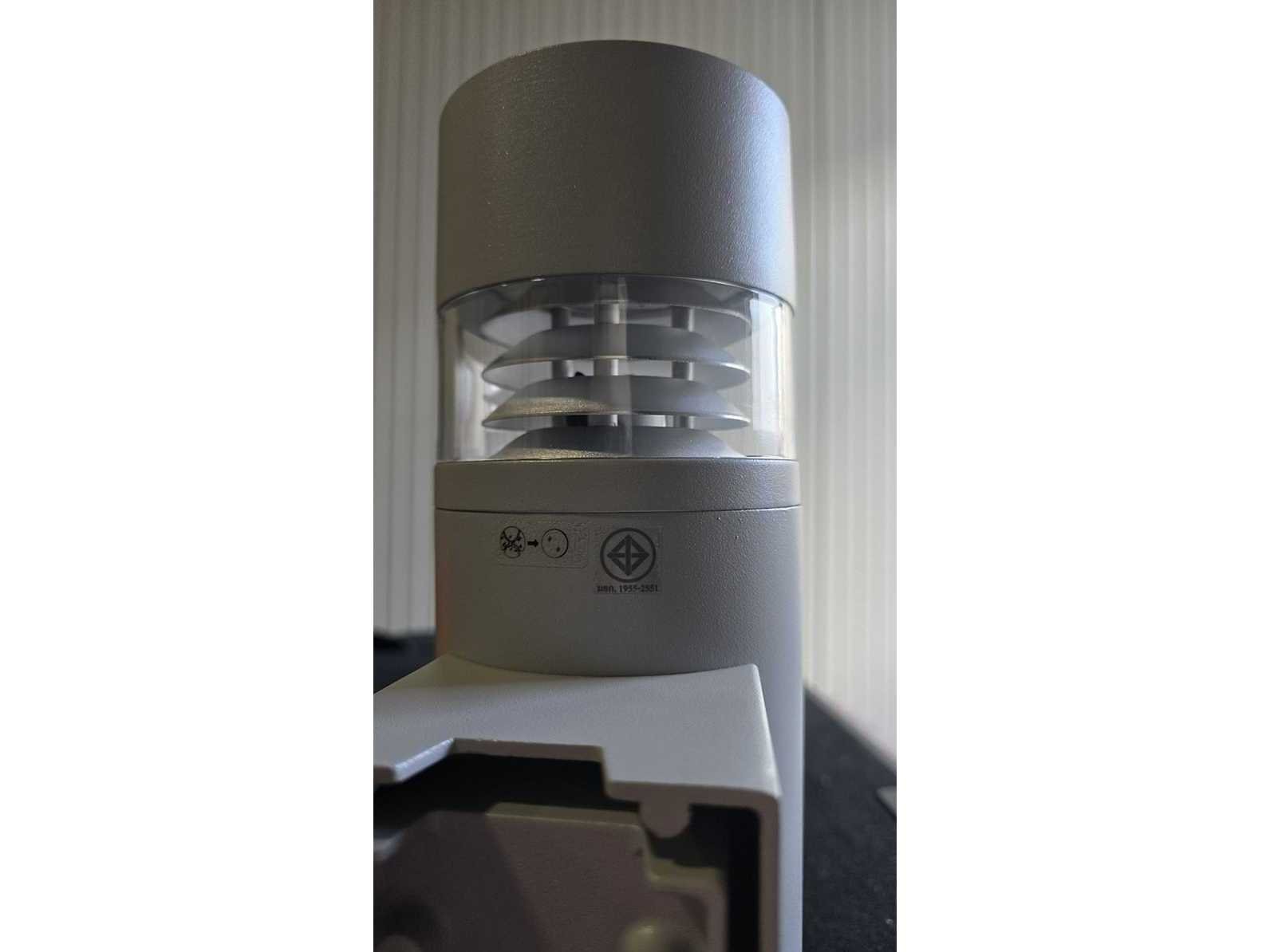 Buiten wandlamp LED 3000K 12W ongebruikt in de verpakking Zie foto's voor de details Merk: Unilamp Model: CHARISMA 2 Wall light Outdoor Energielabel: a Kleur: Zilver Lengte: 14cm Breedte: 10cm Hoogte: 32cm Materiaal: Aluminium