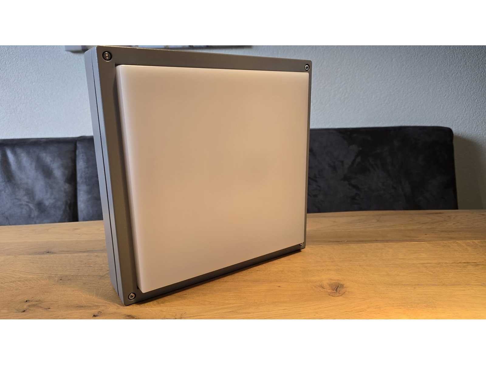 Ongebruikt in de verpakking Zie foto's voor de details De vierkante DRIFT wand- en plafondlampen hebben een robuuste aluminium structuur en een slagvaste polycarbonaat diffuser. De LED-module is verkrijgbaar met ingebouwde microgolfbewegingssensor en hi-low light-functie. De kleurtemperatuur is 3000K of 4000K met keuze uit Dali-optie. De hoge beschermingsgraad van IP65 en IK09 zorgt ervoor dat DRIFT in de zwaarste buitenomgevingen kan worden geïnstalleerd. Met de diffuse lichtverdeling biedt het goede algemene verlichting met weinig schittering in privé- en openbare ruimtes. De voorkant is verkrijgbaar in verschillende ontwerpen; bovendien is DRIFT verkrijgbaar met de keuze uit zes verschillende kleuren. Merk: Unilamp Model: Mini Flat Drift Wattage: 220W Lichtbron: led Kleur: Grijs Lengte: 27cm Breedte: 27cm Hoogte: 8cm Materiaal: Metaal