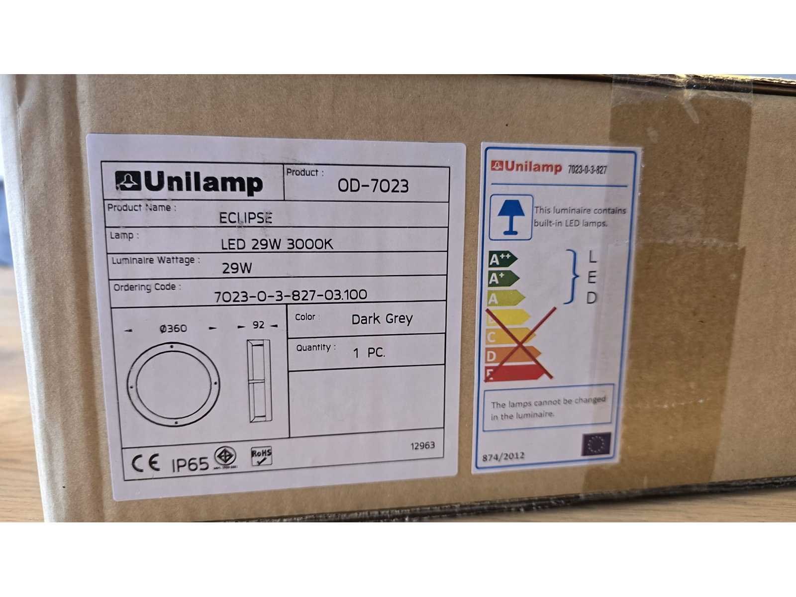 Hoge Kwaliteit buitenverlichting Ongebruikt in de verpakking Zie foto's voor de details Merk: Unilamp Model: Eclipse Outdoor Met lichtbron: true Energielabel: A Wattage: 29W Lichtbron: led Kleur: grijs Lengte: 36cm Breedte: 9cm Materiaal: Metaal