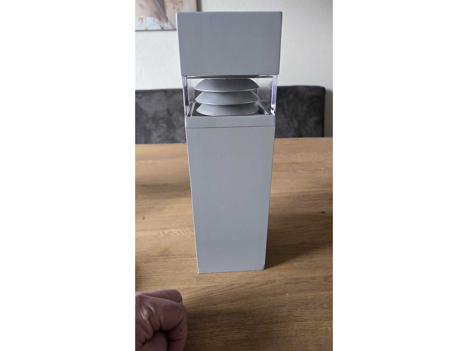 Hoge kwaliteit buitenwandlamp Ongebruikt in de verpakking Zie foto's voor de details Merk: Unilamp Model: Charisma 2 Led Wandlamp Product type: UL-7565-901-SL Met lichtbron: true Wattage: 14W Lichtbron: Led Kleur: Grijs Lengte: 10cm Breedte: 10cm Hoogte: 33cm Materiaal: Metaal