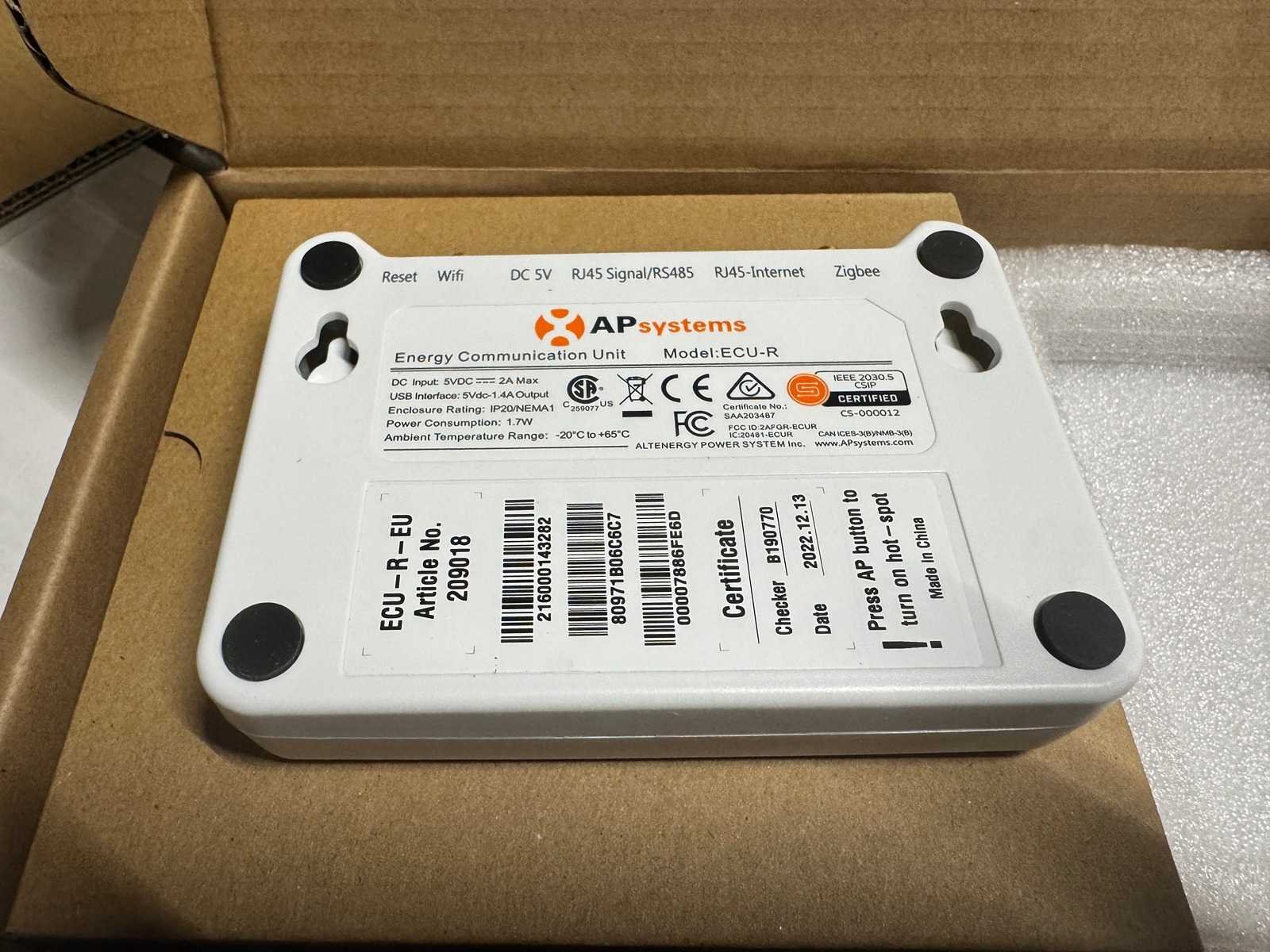 De APSystems Energy Communication Unit ECU is de informatie gateway voor de de DS3 micro-omvormer serie. De module verzamelt de prestatie gegevens van elke afzonderlijke micro-omvormer en stuurt deze informatie naar een database, slechts verbonden met een enkele data en power kabel. Via de APsystems EMA applicatie, geeft de ECU u nauwkeurige analyses van elke micro-omvormer en elk zonnepaneel vanaf uw mobiel, tablet of computer. De gebruiksvriendelijke interface geeft u in enkele seconden toegang tot uw solar systeem. Standaard voorzien van Wifi en Zigbee. Merk: AP Systems Type: ECU-R 3 1-fase: true Eigen gewicht: 1kg