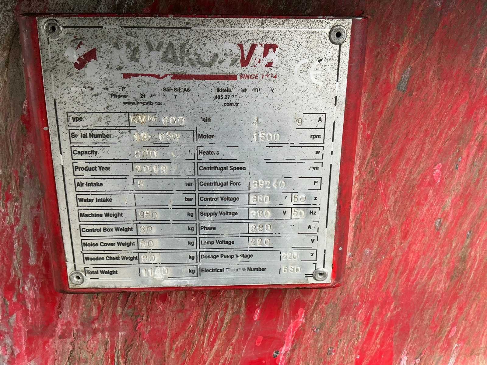 Merk: KayakocVib Type: KVM600 Bouwjaar: 2013 Aansluiting: 400V Afmeting l: 2100mm Afmeting b: 1600mm Afmeting h: 1600mm