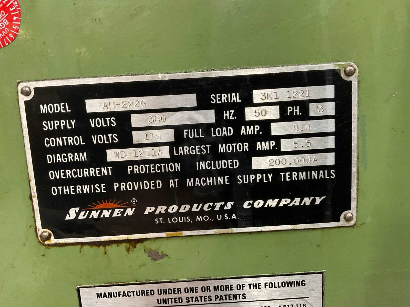Merk: Sunnen Type: AH-222G Serienummer: 3K1 1221 Horizontaal: true Aansluiting: 400V Afmeting l: 1850mm Afmeting b: 1000mm Afmeting h: 1700mm