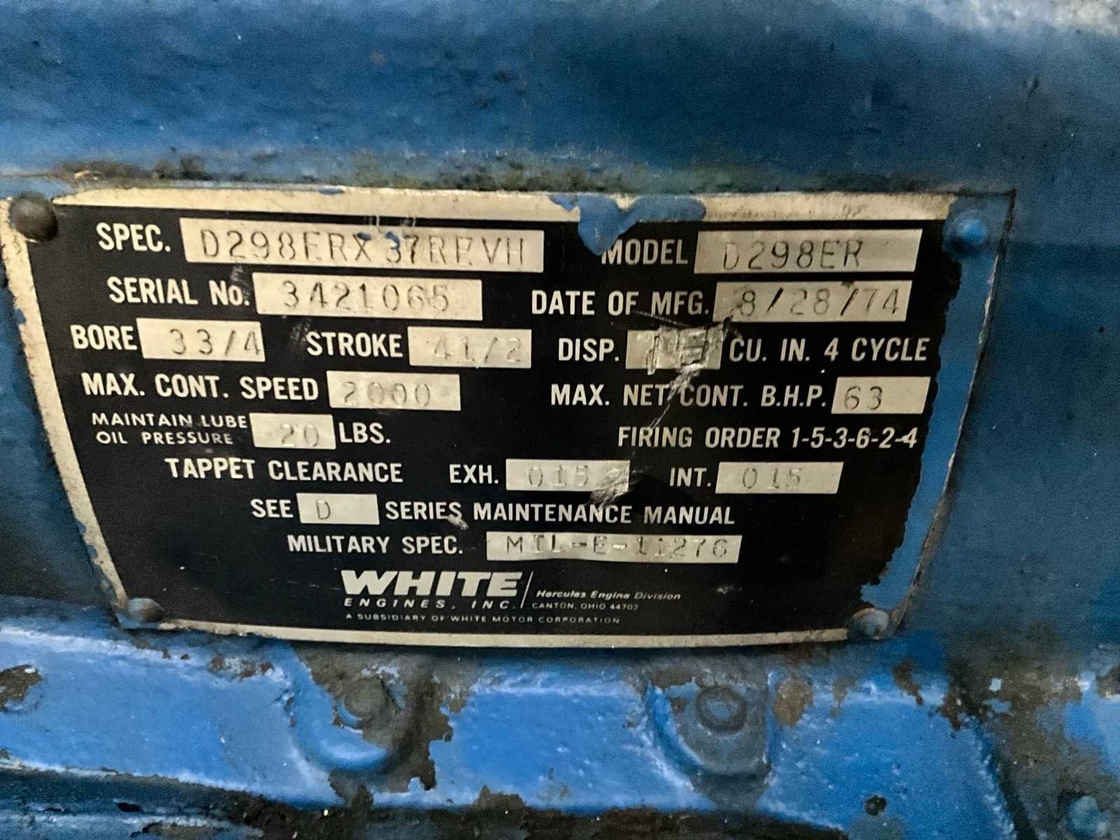 1974 white d298er noodstroomaggregaat