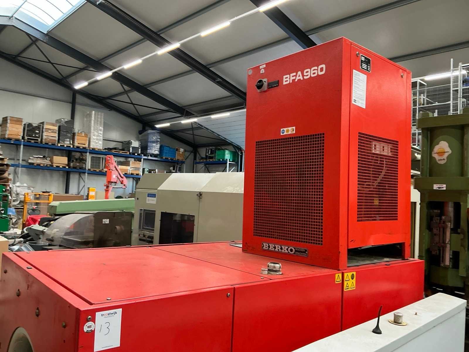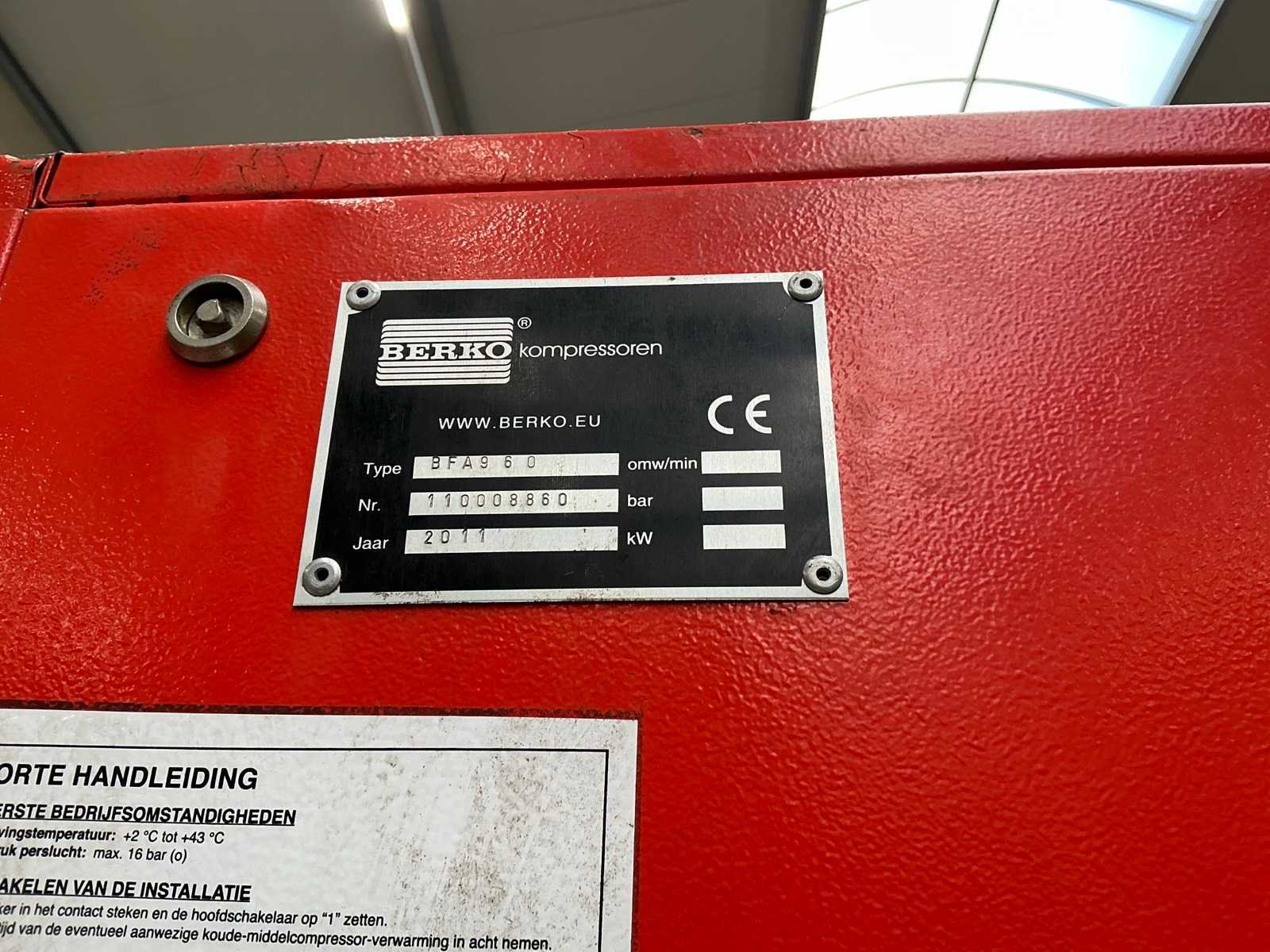 Afmeting compressor 2050x1100x1650mm, afmeting droger circa 690x730x1130mm. Merk: Berko Type: BR80/BFA960 Bouwjaar: 2007 Capaciteit.: 10bar Aansluiting: 400V
