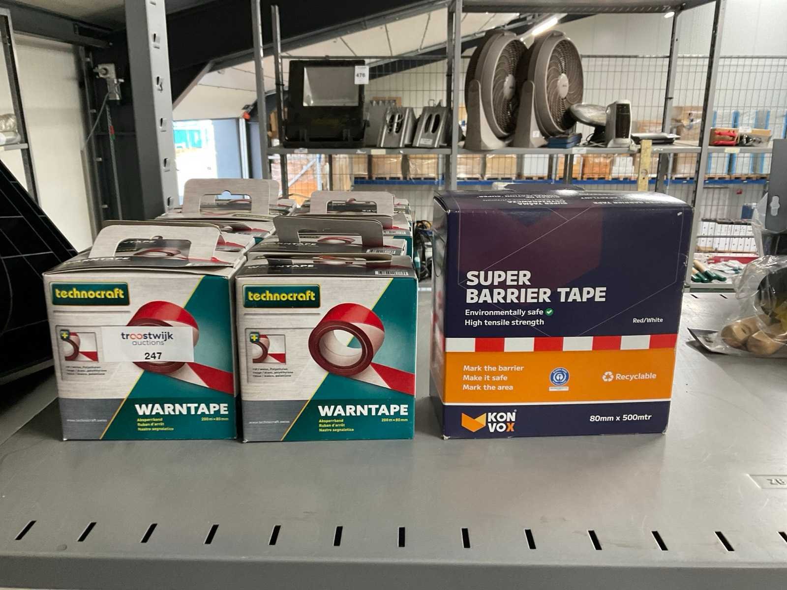 Waaronder 10x Technocraft rood-wit band 200m x 80mm, 1x Konvox rood-wit band 500m x 80mm