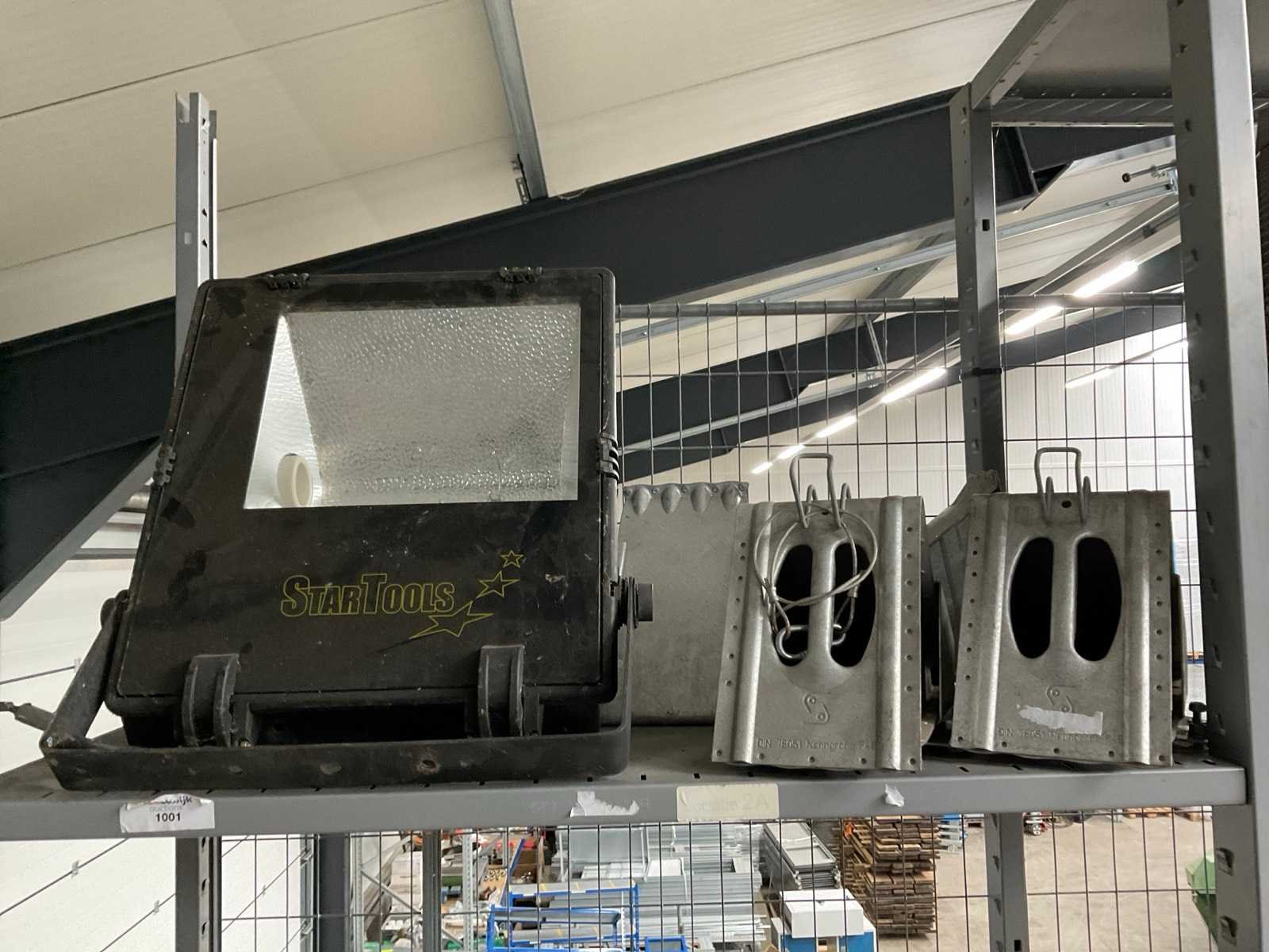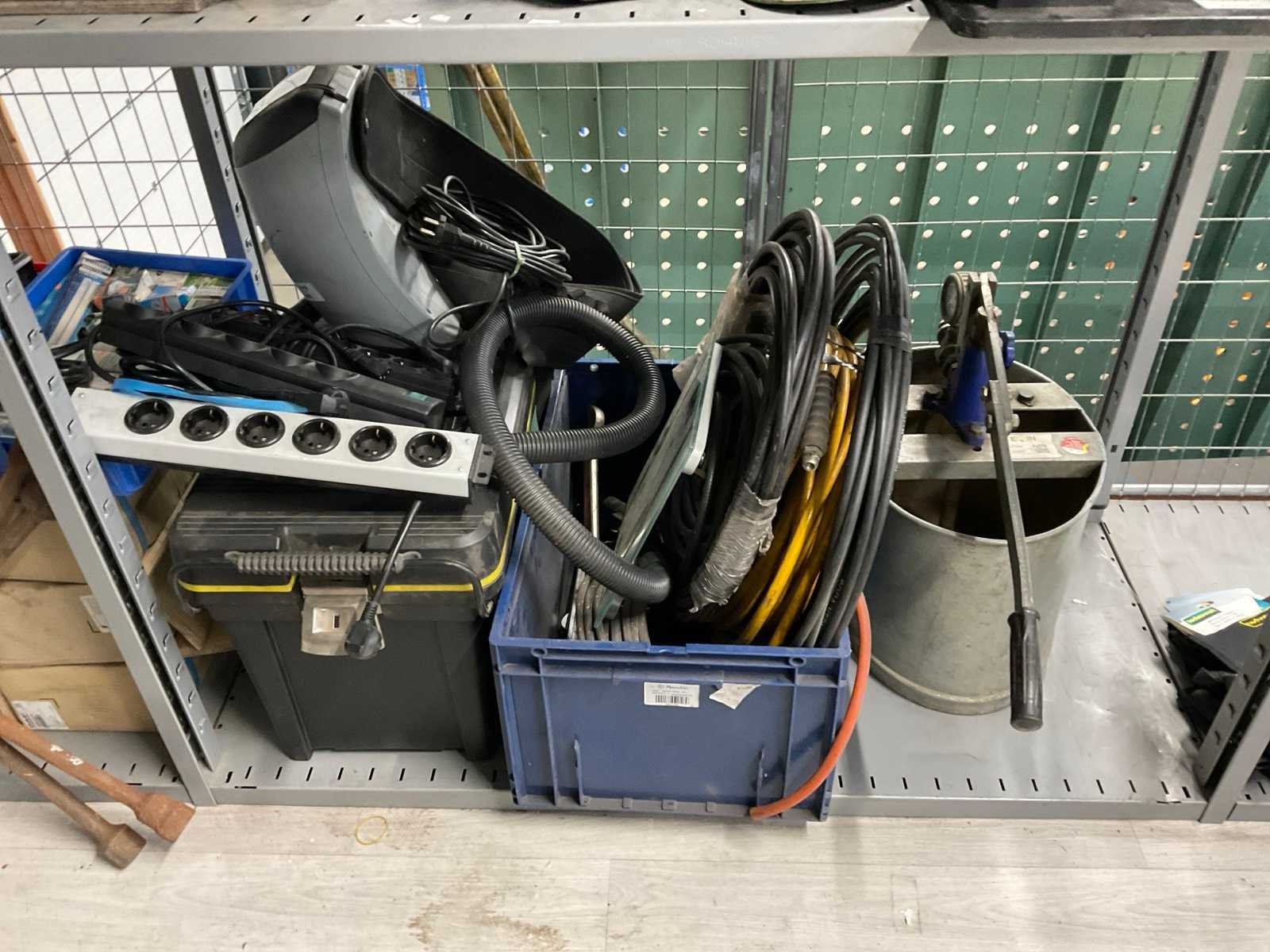 Bestaande uit: elektrisch gereedschap, schakelkasten, floodlights, ventilators, etc. Betreft de inhoud van 2x sectie legbordstelling