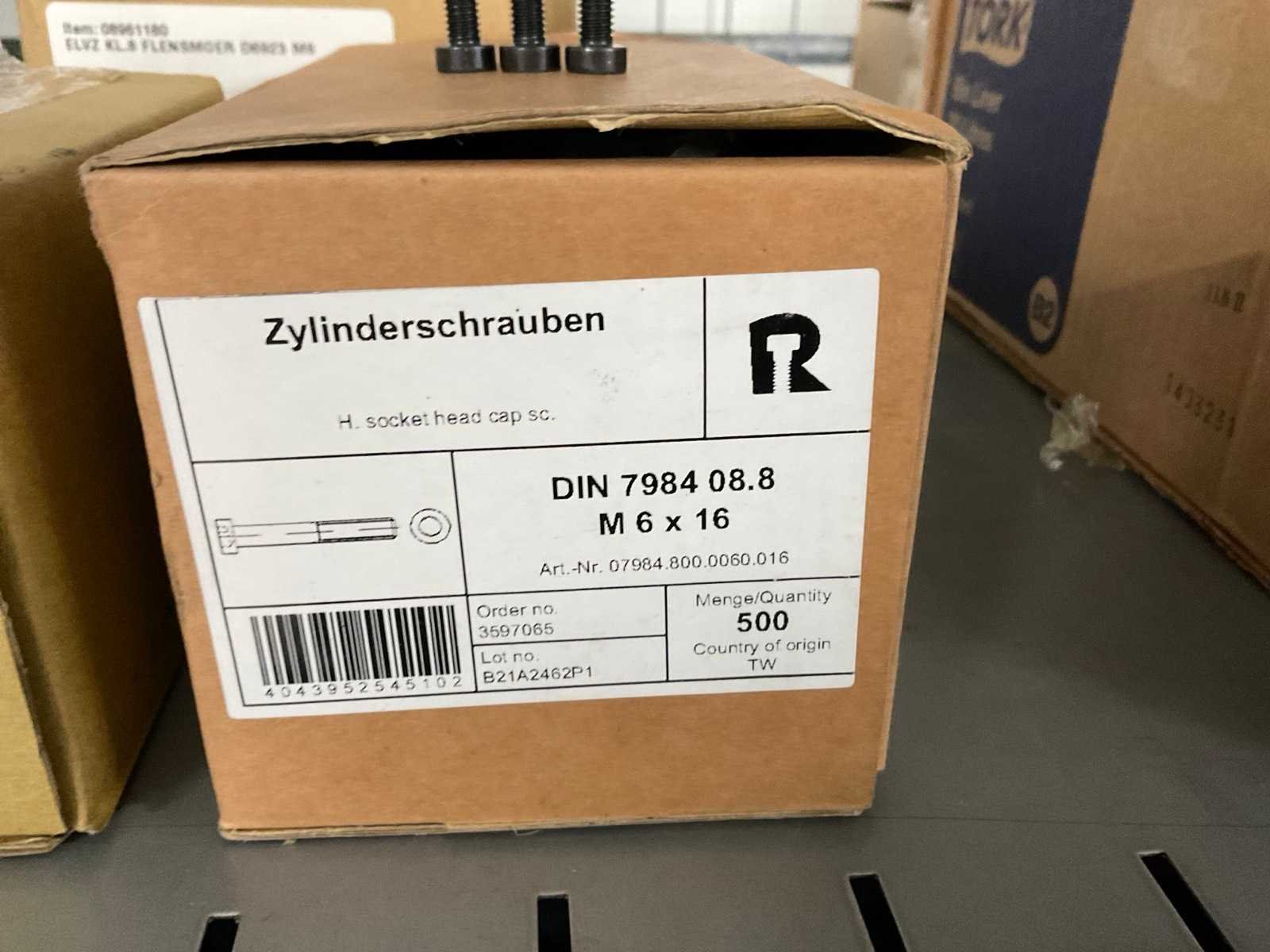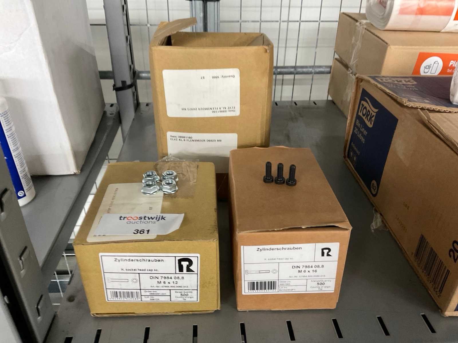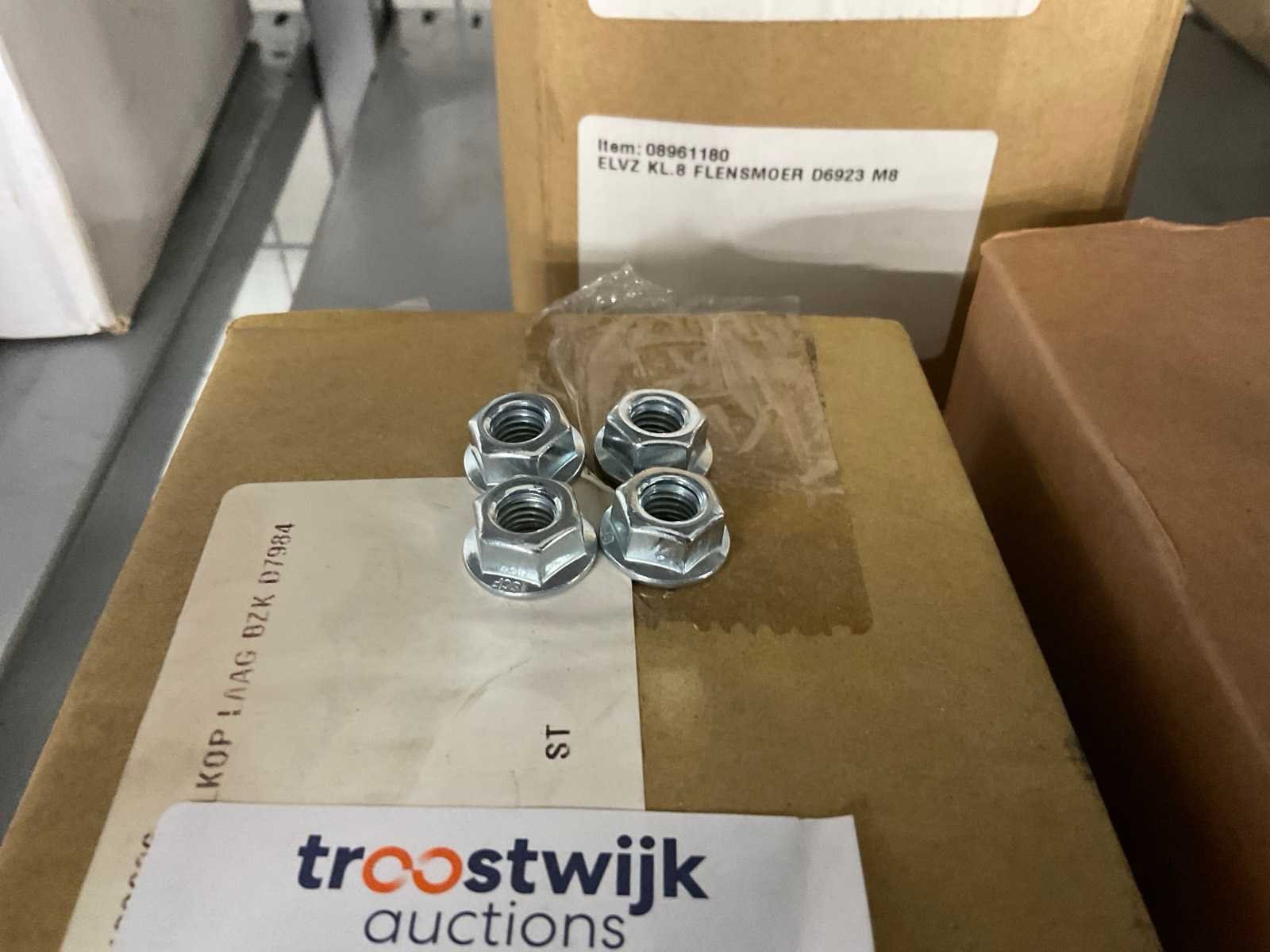 Waaronder cilinderschroeven M6x16 en M6x12, flensmoeren M8