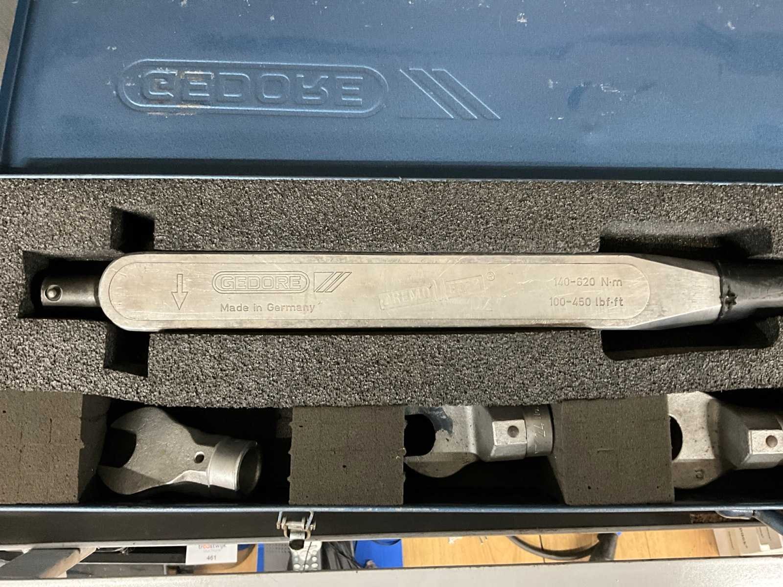 In en inclusief metalen koffer met diverse opsteeksleutels. Merk: Gedore Draaimoment van: 140N Draaimoment tot: 620N Lengte: 84
