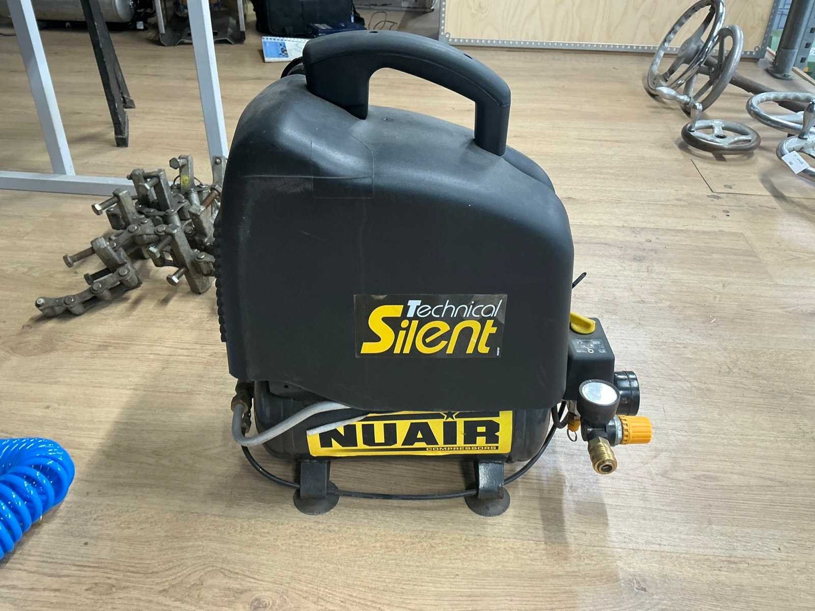 Draagbaar Merk: Nuair Type: OM200/6 SIL Bouwjaar: 2012 Serienummer: 322585 Capaciteit.: 8bar Vermogen: 0.75kW Buffertank inhoud: 6l Aansluiting: 230V