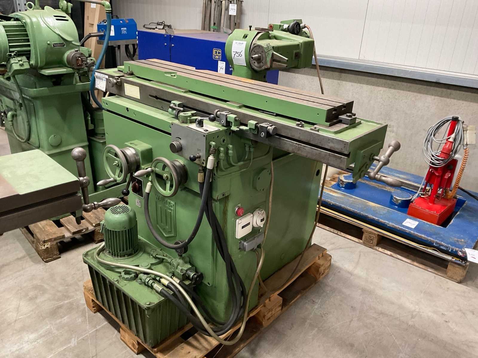 Elektro hydraulisch Merk: Walter Type: 4C Bouwjaar: 1972 Serienummer: 1016 Tafel afmeting l: 1080mm Tafel afmeting b: 180mm Motorvermogen (kW): 0.37kW Aansluiting: 400V Afmeting l: 1200mm Afmeting b: 1650mm Afmeting h: 1300mm