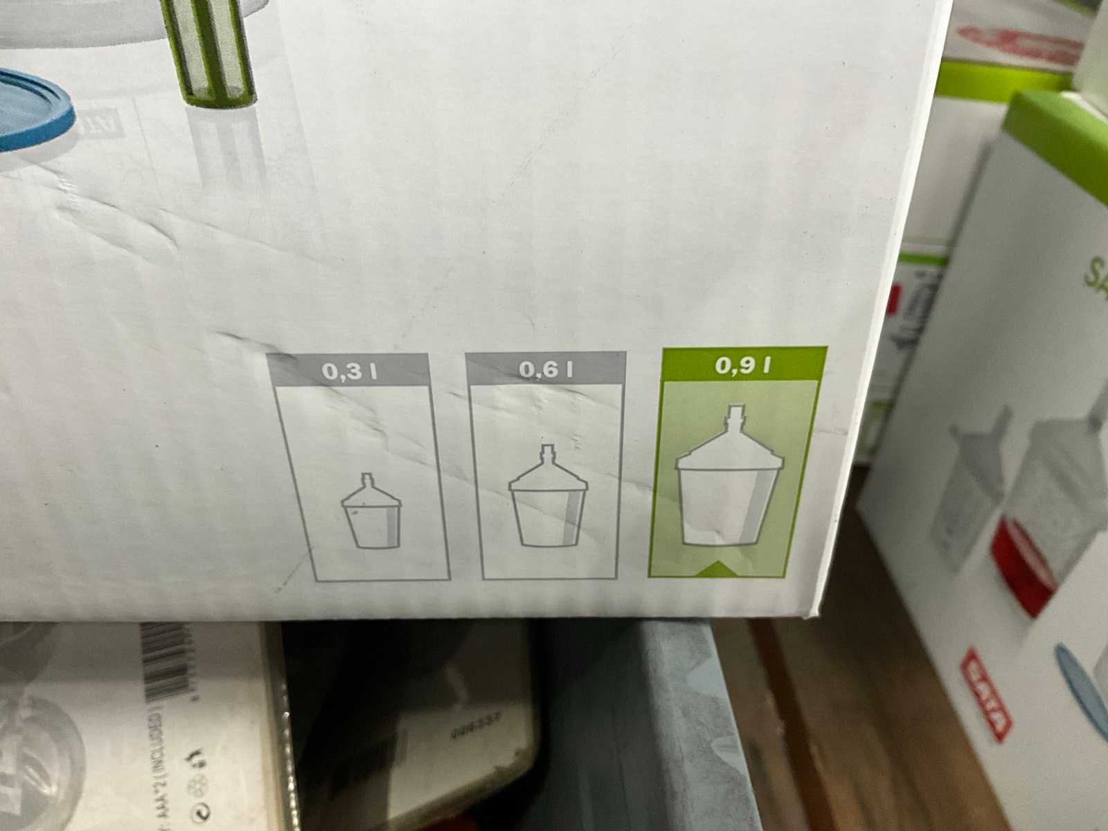 0,9 en 0,6 liter, inclusief deksel, in 5 dozen. Merk: SATA RPS