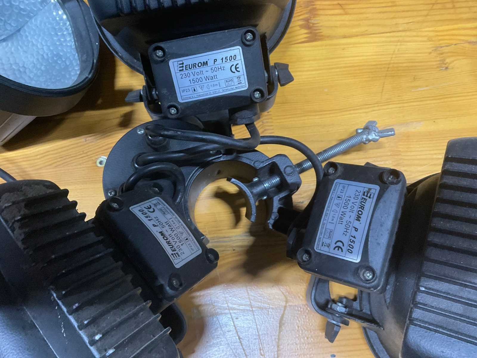 230v, Vermogen: 1500w, Beschermingsgraad: IP23. Inclusief: (2x) Eurolite par lampen, Type: PAR58, 230v, 300w. Merk: Eurom Model: P1500