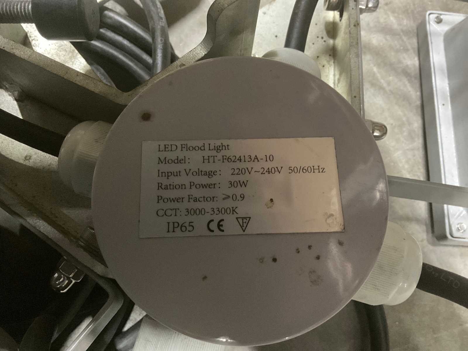 Schijnwerpers, Voltage: 230v, Vermogen: 30W, Kleurtemperatuur: 3000–3300K (warm wit), Beschermingsklasse: IP65. Model: HT-F62413A-10