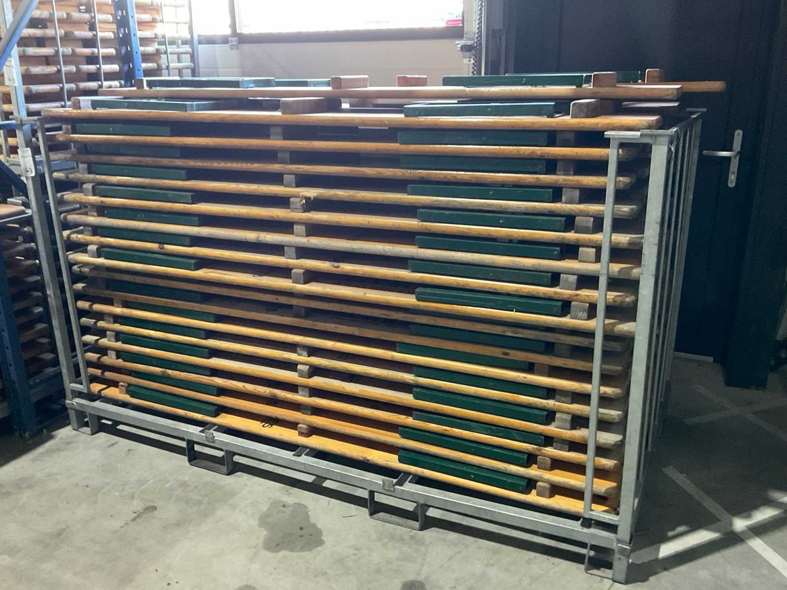 Inclusief: (4x) transportbokken 232x116cm, hoogte divers. Lengte: 220cm Breedte: 25cm Hoogte: 48cm Materiaal: Hout / Staal