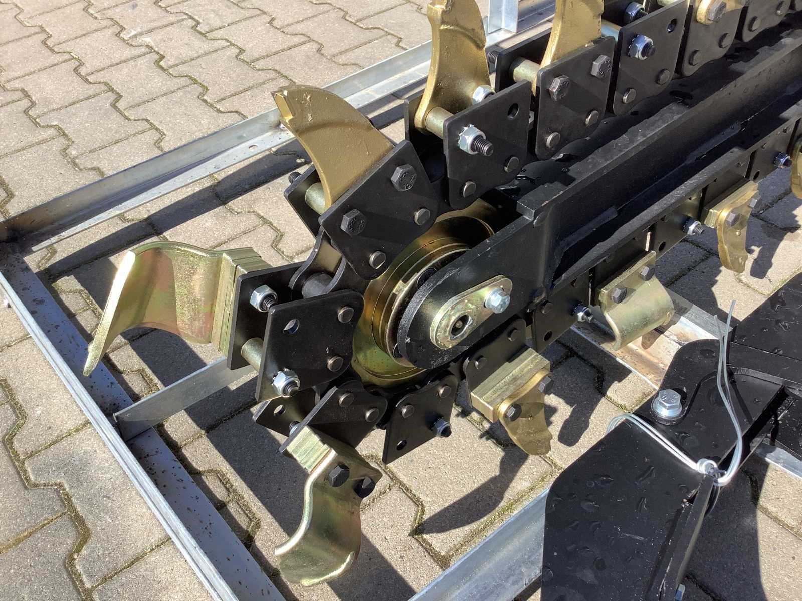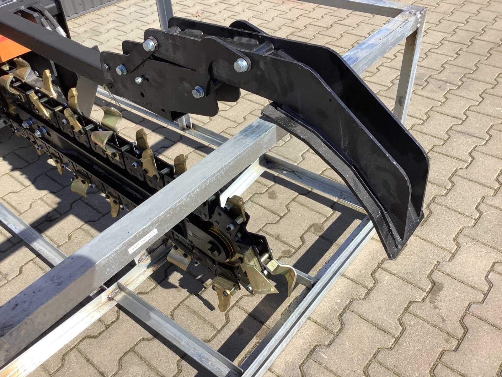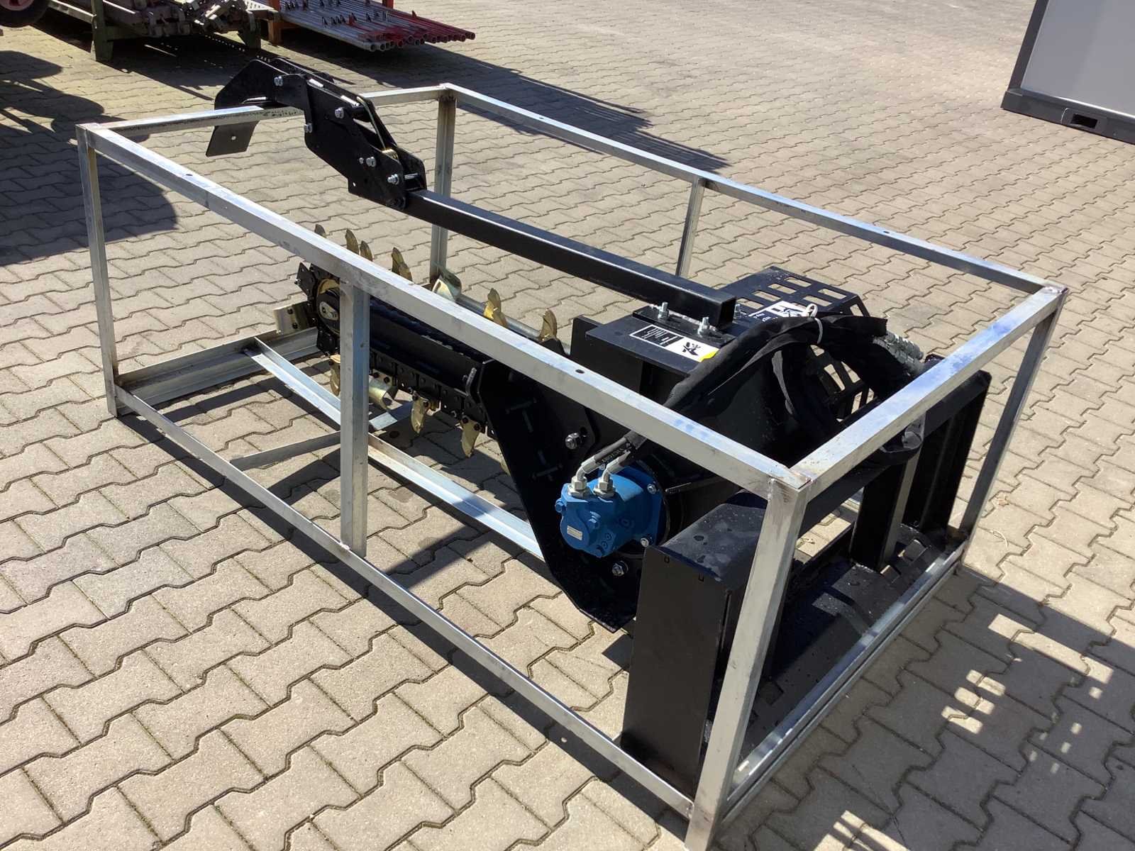 V.v. schranklader/“Bobcat” opname-/aanbouwplaat; hydromotor; hydraulisch slangenpakket; werkbreedte 860 mm; werklengte 1750 mm; kettingbreedte 180 mm; ongebruikt in stalen transportframe Merk: Easy-Going Type: Trencher Bouwjaar: 2026 Eigen gewicht: 375kg GS Code: 843280