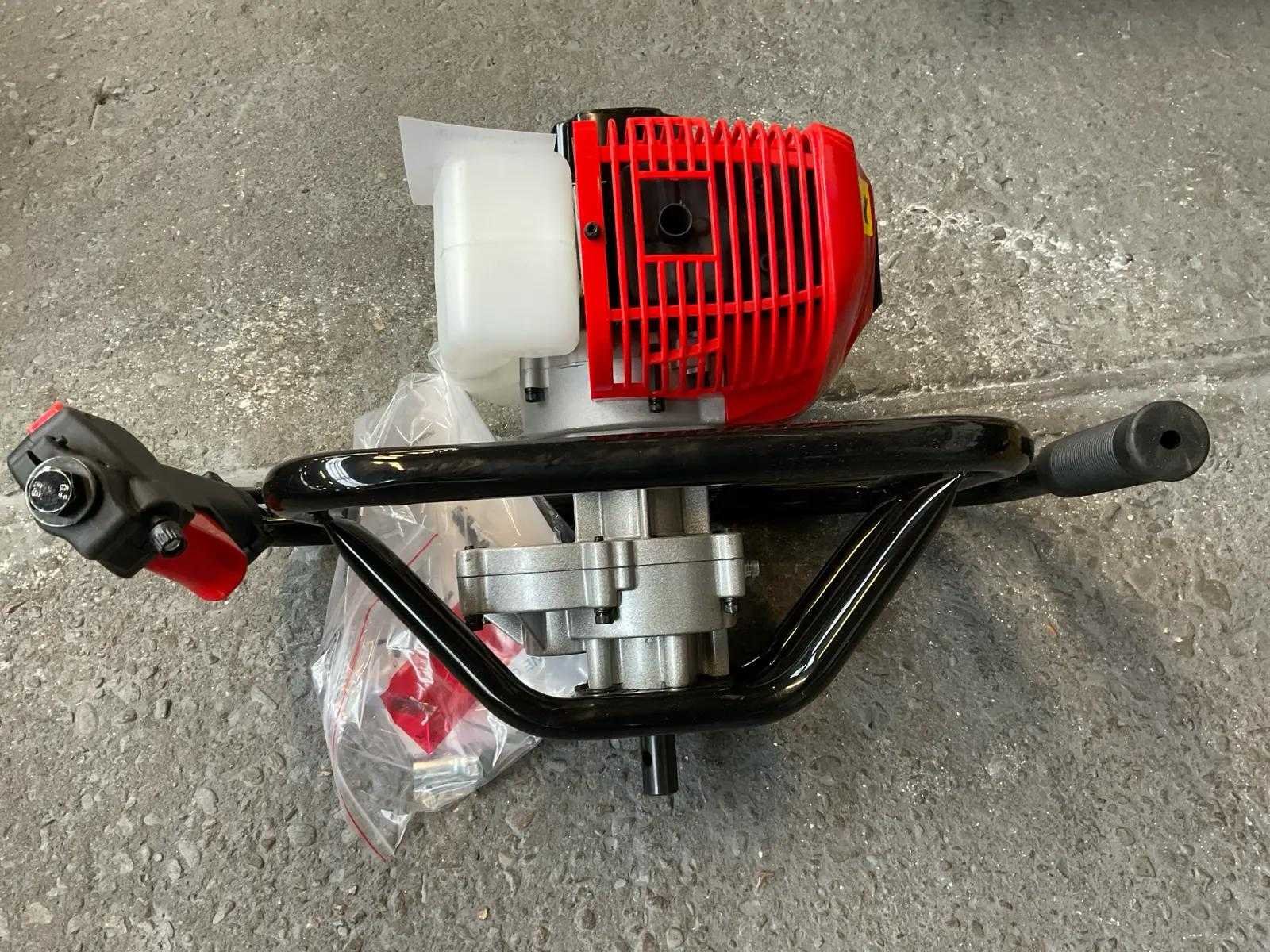Benzine motor, boordiameter 9 mm, 11mm, 16mm, 21mm Zeer krachtige tuin 52cc benzine grondboor graafgatmachine Modelnr. TMD520-1 Maximaal motorvermogen 1,6 kW Motor verplaatsing 51,7CC Motor model 1E44F Brandstof tank capaciteit 1,2L Maximaal motortoerental 9000±500rpm Stationair toerental 3000±200rpm Brandstof/olie mengselverhouding 25:1 Gewicht GW 10KG/NW 9KG Accessoireslijst 1. GEREEDSCHAPSKIT 2. BRANDSTOFTANK 3. HANDLEIDING Merk: HH Model: TMD520-3 Kleur: rood Gewicht: 18kg Materiaal: metaal/kunststof