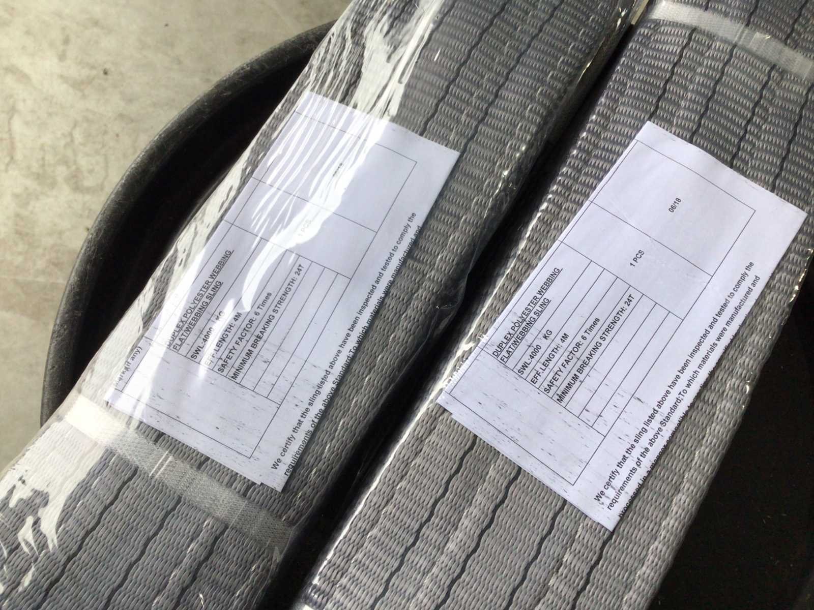 Hijsband ongebruikt; materiaal duplex polyester Grijs 4000 kg 2 stuks 4 meter; Merk: Easy-Going Type: Duplex - 4 ton - 4 meter Bouwjaar: 2026 Hijsvermogen: 4000kg Max. hefhoogte: 4m GS Code: 630790