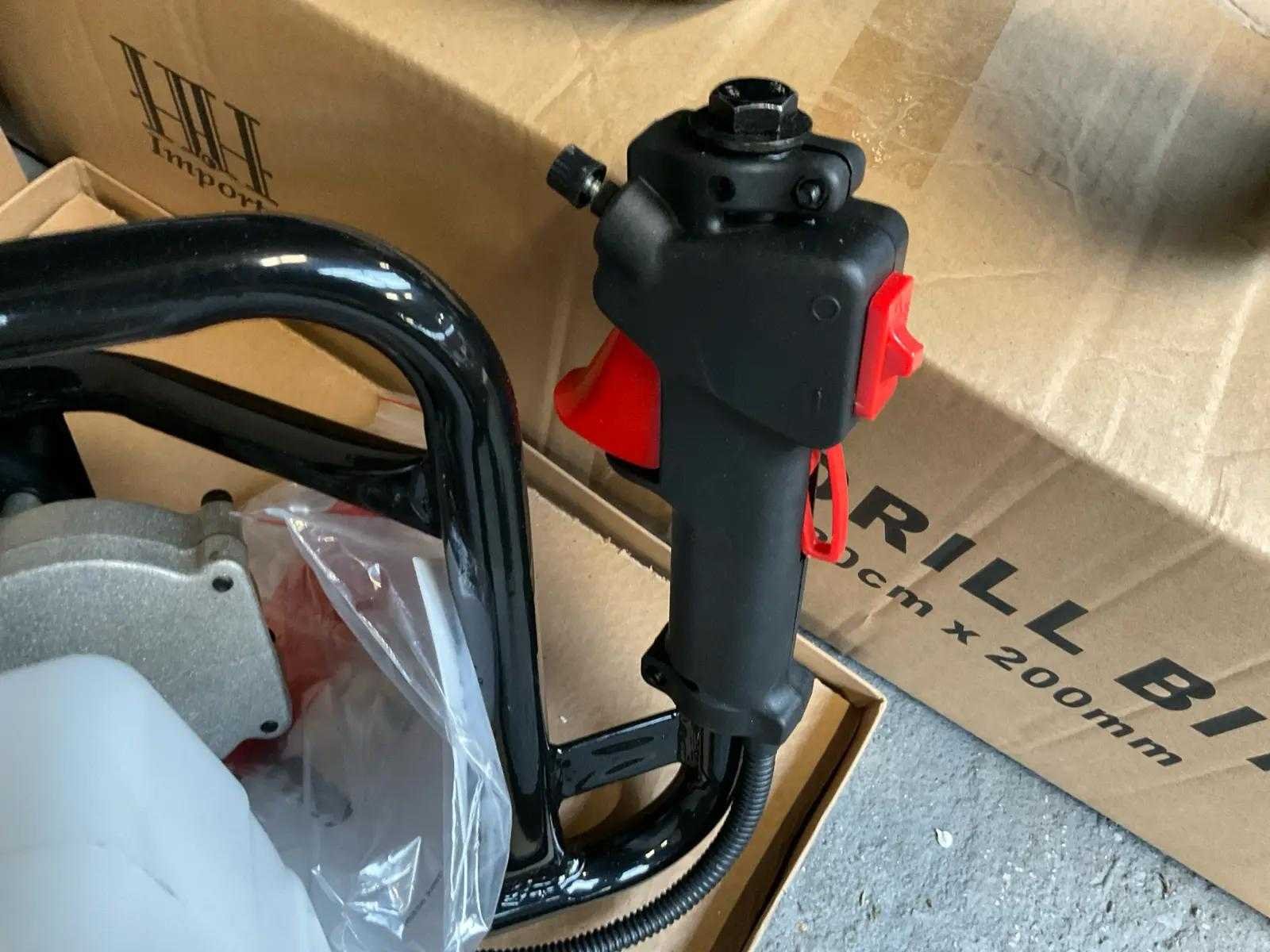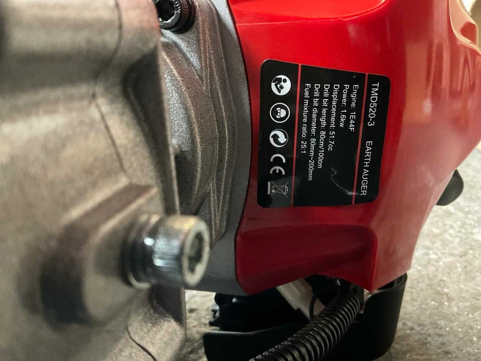 Benzine motor, boordiameter 9 mm, 11mm, 16mm, 21mm Zeer krachtige tuin 52cc benzine grondboor graafgatmachine Modelnr. TMD520-1 Maximaal motorvermogen 1,6 kW Motor verplaatsing 51,7CC Motor model 1E44F Brandstof tank capaciteit 1,2L Maximaal motortoerental 9000±500rpm Stationair toerental 3000±200rpm Brandstof/olie mengselverhouding 25:1 Gewicht GW 10KG/NW 9KG Accessoireslijst 1. GEREEDSCHAPSKIT 2. BRANDSTOFTANK 3. HANDLEIDING Merk: HH Model: TMD520-3 Kleur: rood Gewicht: 18kg Materiaal: metaal/kunststof