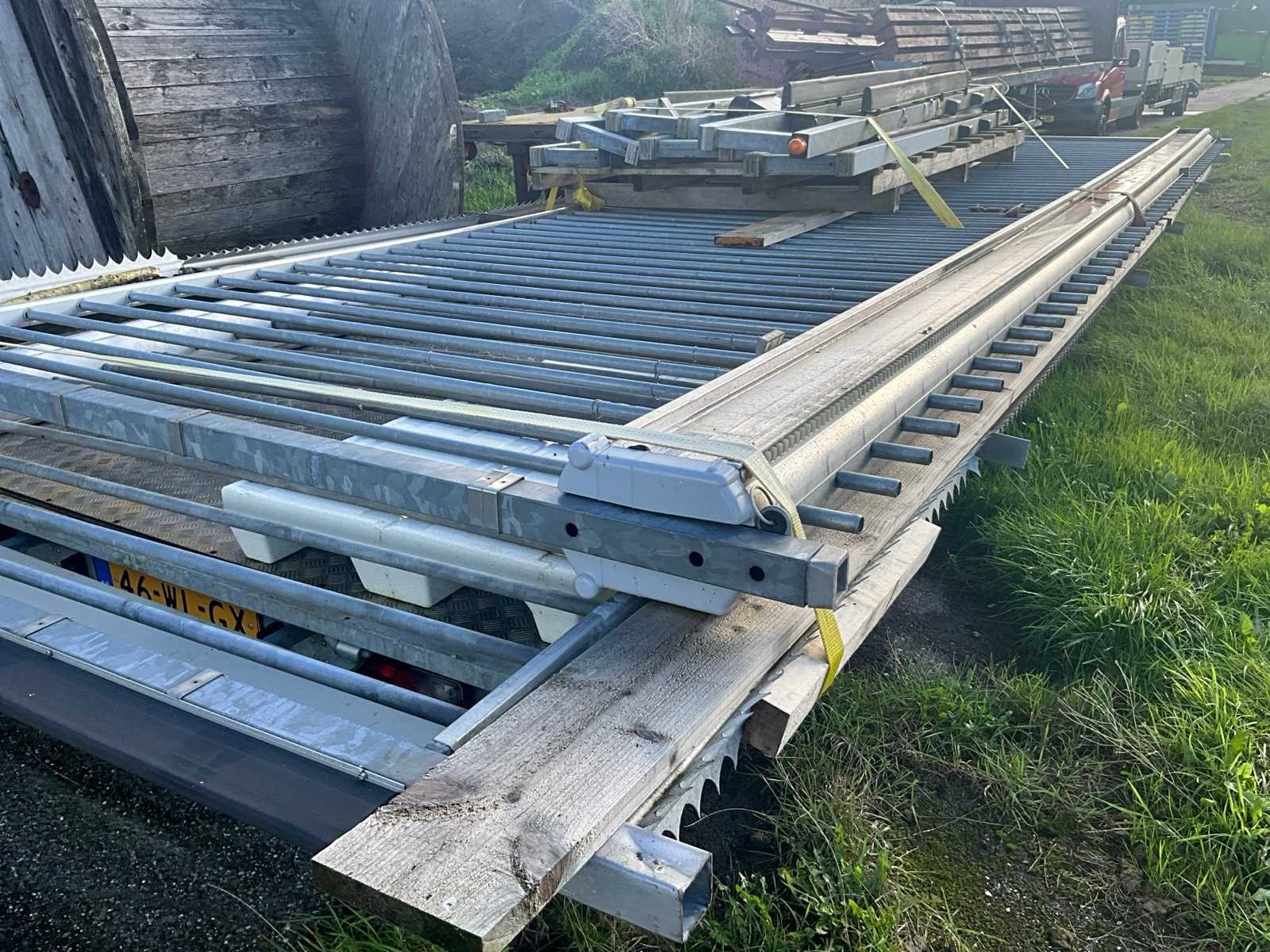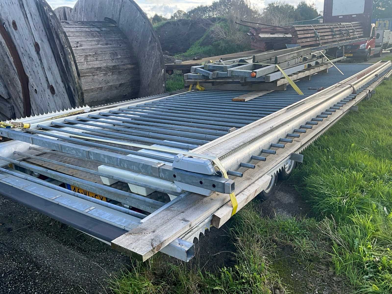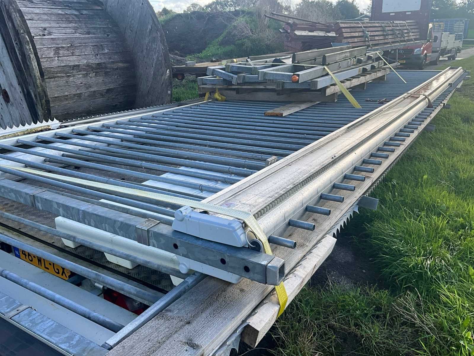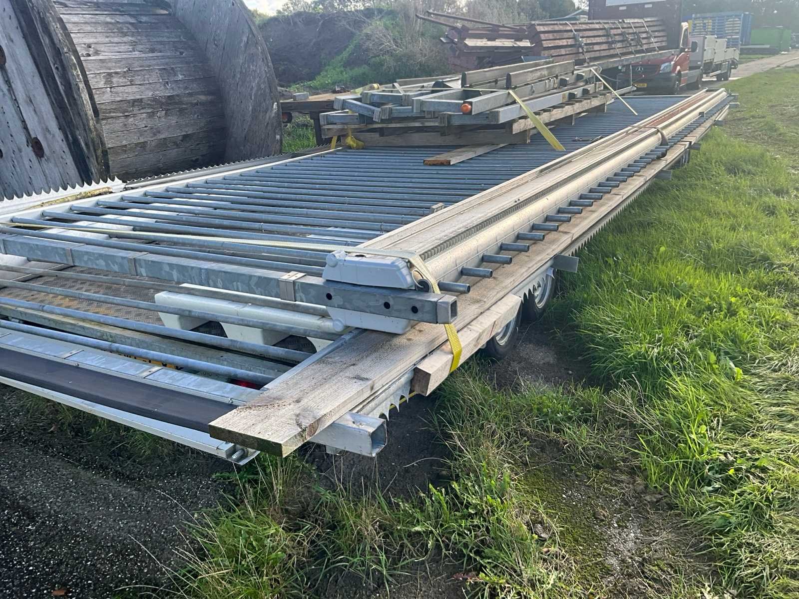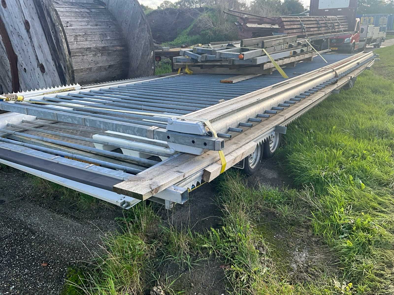 Bouwjaar 2017 ca. 200 kg per stuk; Aanhangwagen niet inbegrepen totaal 2 stuks ca. 8700 mm en 7700 mm lang 2750 mm hoog Merk: Heras Model: Lgvsp Lengte: 8700cm Hoogte: 275cm Materiaal: Aluminium