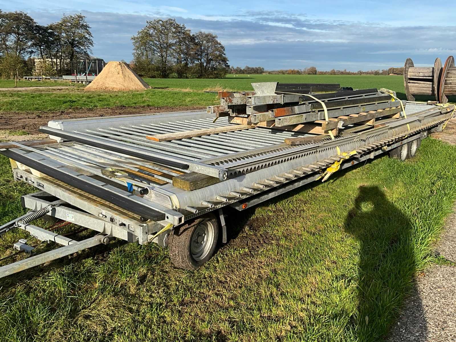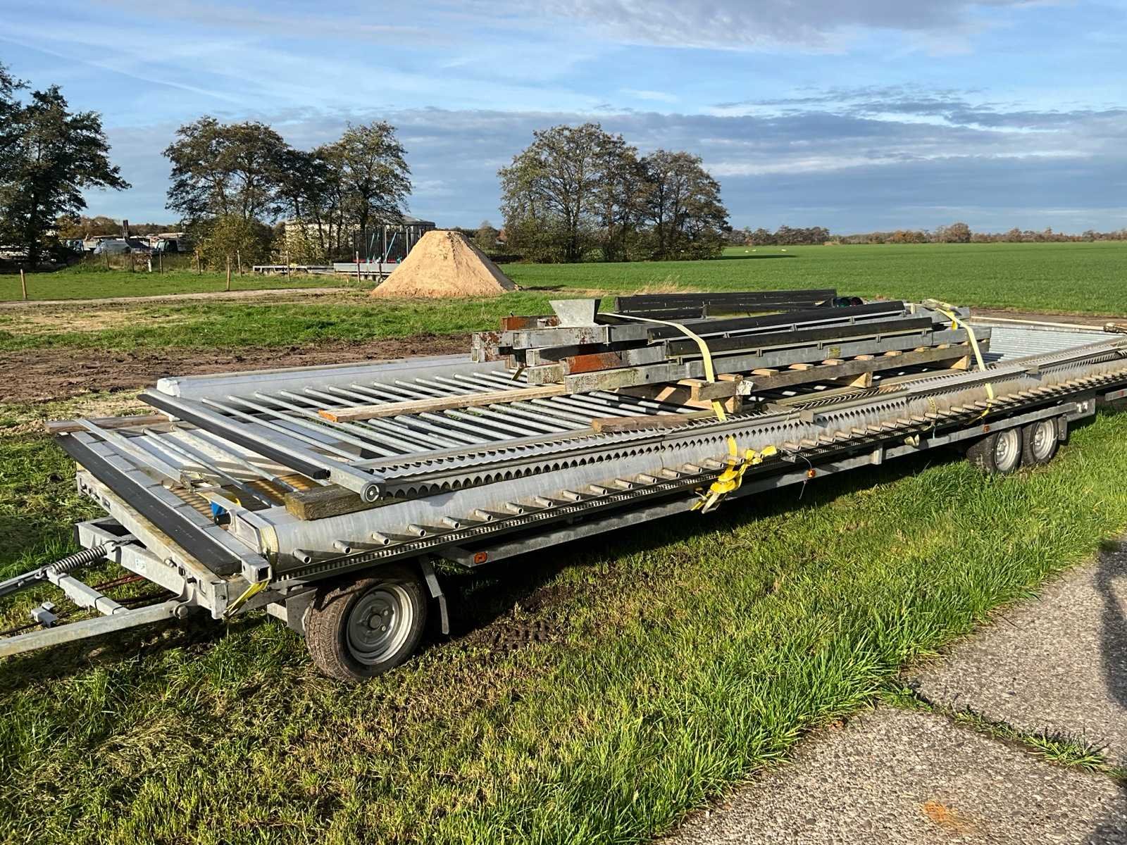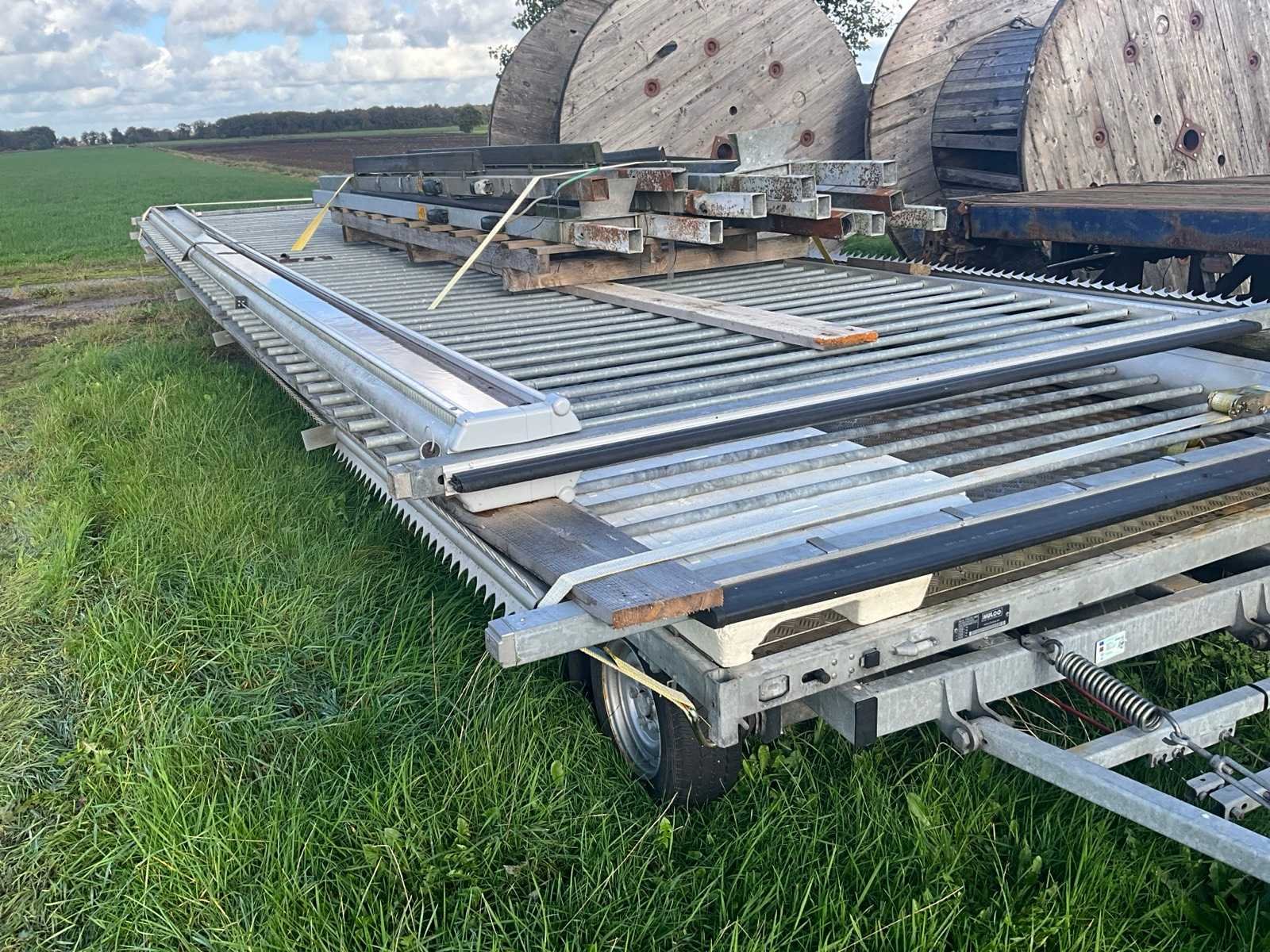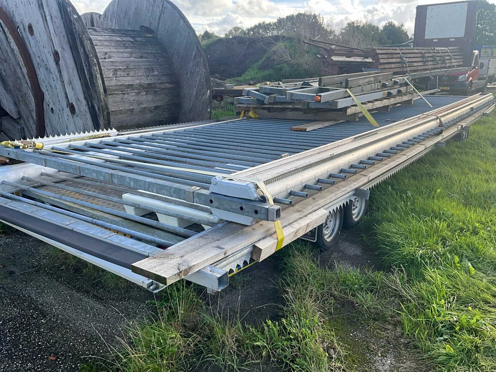 Bouwjaar 2017 ca. 200 kg per stuk; Aanhangwagen niet inbegrepen totaal 2 stuks ca. 8700 mm en 7700 mm lang 2750 mm hoog Merk: Heras Model: Lgvsp Lengte: 8700cm Hoogte: 275cm Materiaal: Aluminium