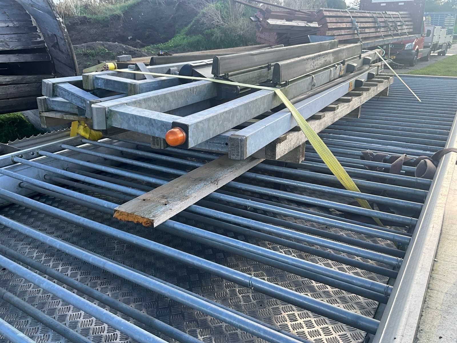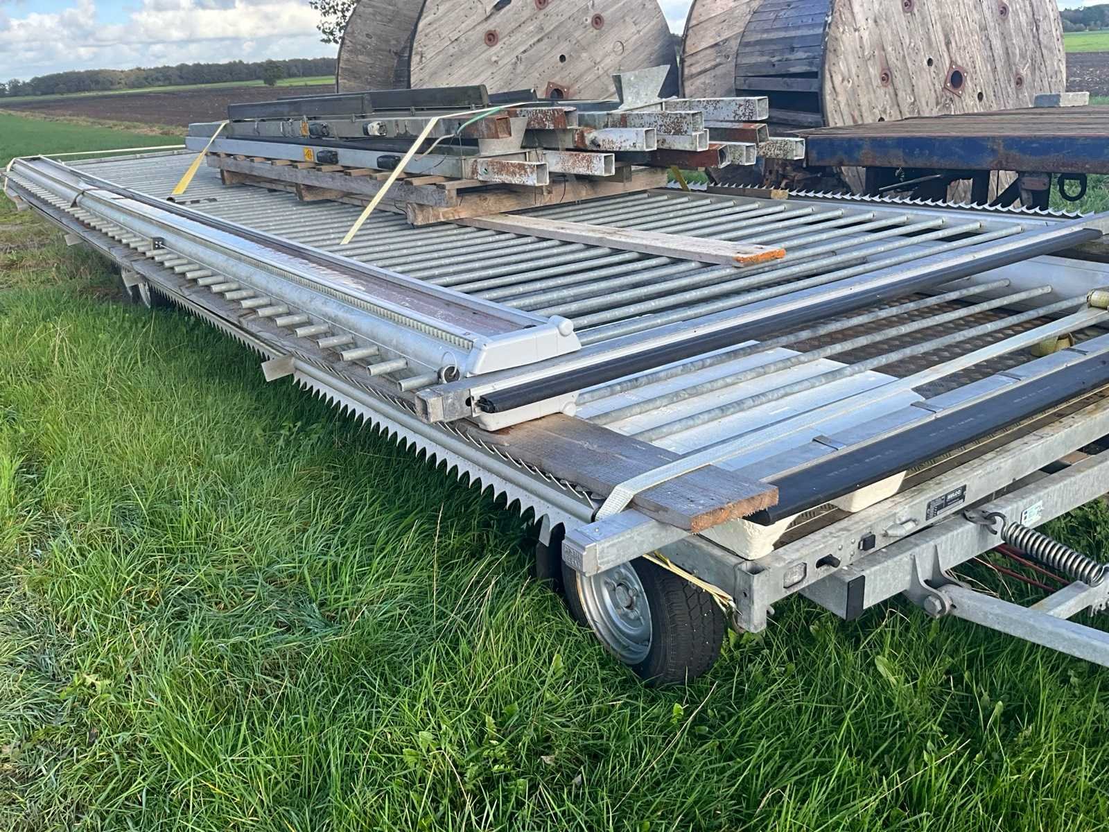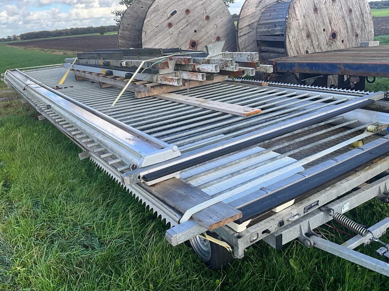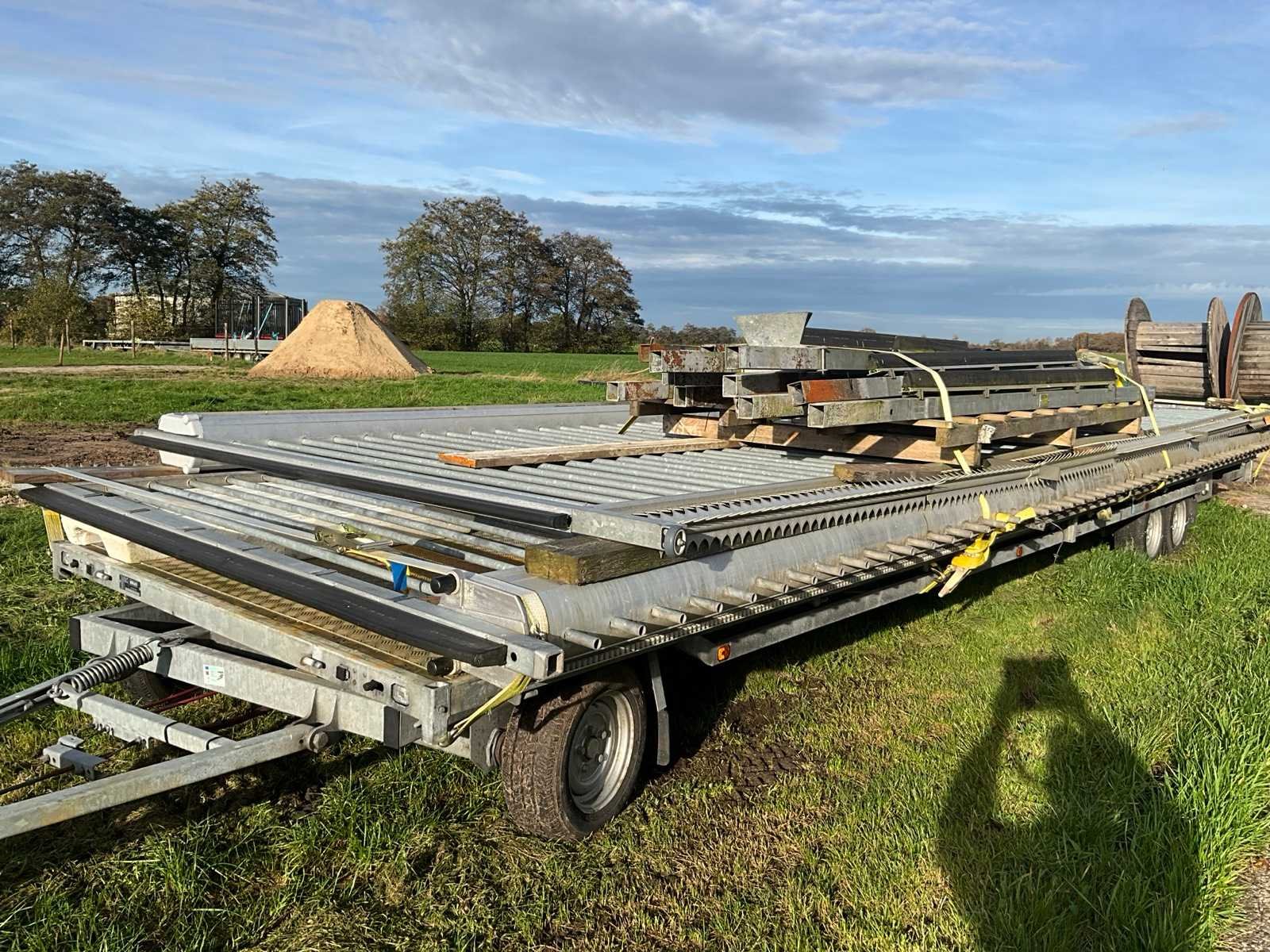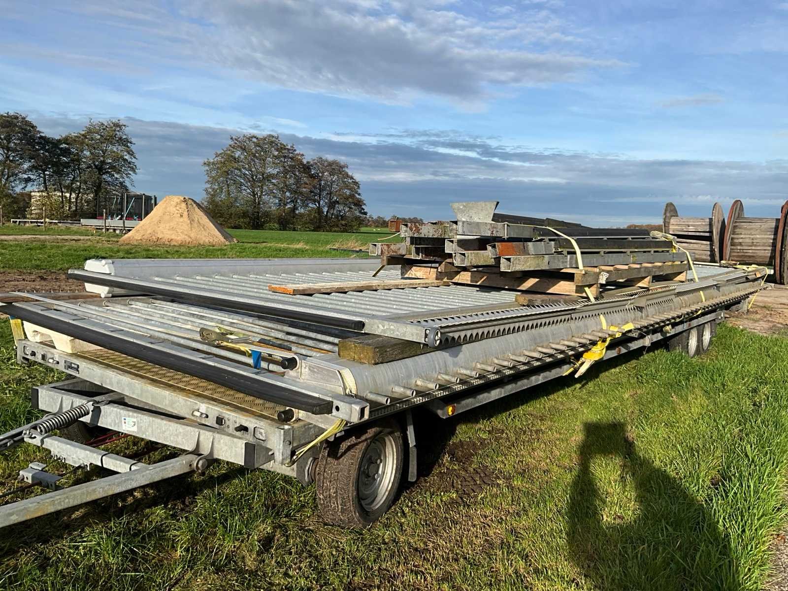 Bouwjaar 2017 ca. 200 kg per stuk; Aanhangwagen niet inbegrepen totaal 2 stuks ca. 8700 mm en 7700 mm lang 2750 mm hoog Merk: Heras Model: Lgvsp Lengte: 8700cm Hoogte: 275cm Materiaal: Aluminium