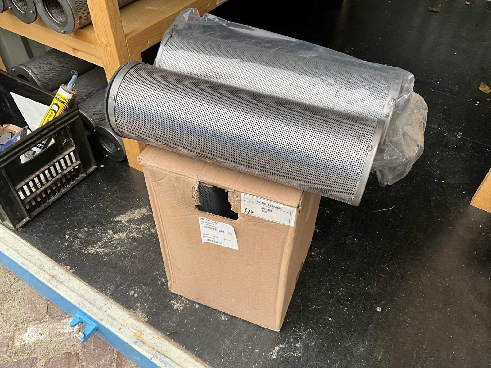 Ongebruikt; actieve kool patroon; RVS uitvoering; afmeting cilinder ø145 x 450mm; Actief kool t.b.v. geuren, gassen en moleculen in de lucht te adsorberen en te neutraliseren; ontgeuren, luchtreiniging; 4 stuks per doos Merk: Wiltec Type: W2600 RVS Totale afmeting L: 450mm Totale afmeting Breedte: 145mm Totale afmeting Hoogte: 145mm