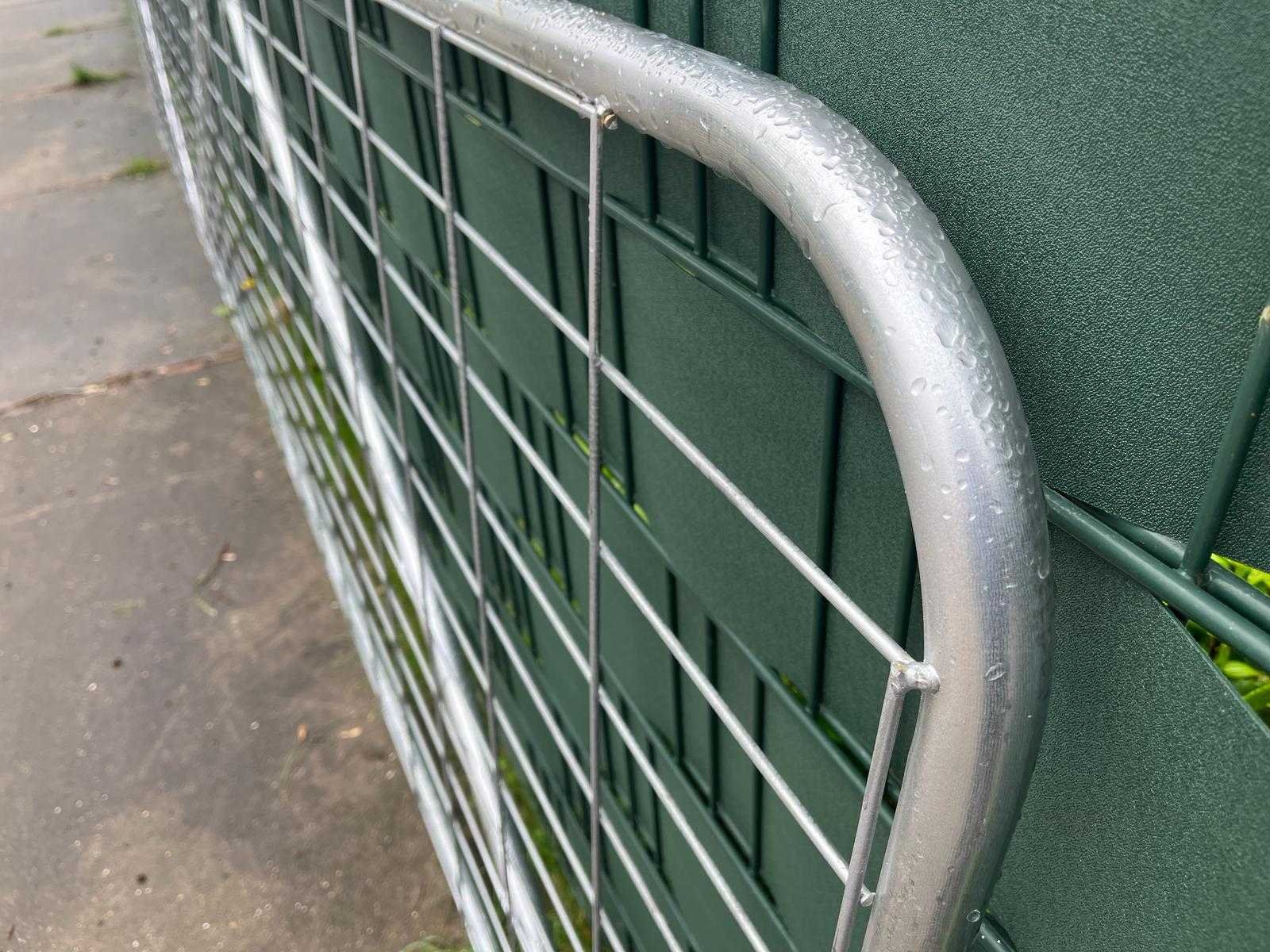 Ongebruikt; gegalvaniseerd landhek; hoogte : 1.17 meter; breedte : 4.90 meter; gaasopening 100 x 200 mm; draaddiameter 5 mm; buis dikte : 32 x 2 mm. Merk: HH Model: Weidepoort / landhek Gewicht: 36kg Lengte: 490cm Hoogte: 117cm Materiaal: Metaal gegalvaniseerd
