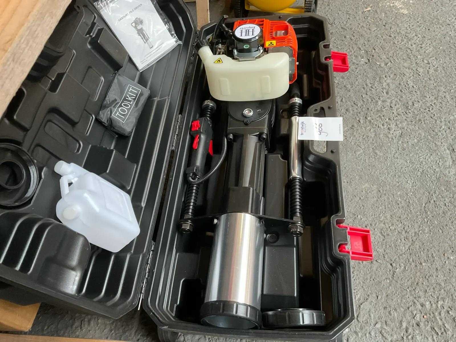 Palen rammer met benzine motor; power : 1400W /7500r/min; 52cc; max snelheid : 5000 rpm; max torque 2.3 nm; loopt op mengsmering : 1:25; consumptie 0,60 l per uur; afmetingen lxbxh : 980x424x350 mm; met 2 hulp opzetstukken met paaldiameter : 45, 65 en 95mm; incl accessoires; incl kunststof draagkoffer met wielen die daardoor verrijdbaar is; handleiding aanwezig Merk: HH Afmeting l: 980mm Afmeting b: 424mm Afmeting h: 350mm Eigen gewicht: 32kg
