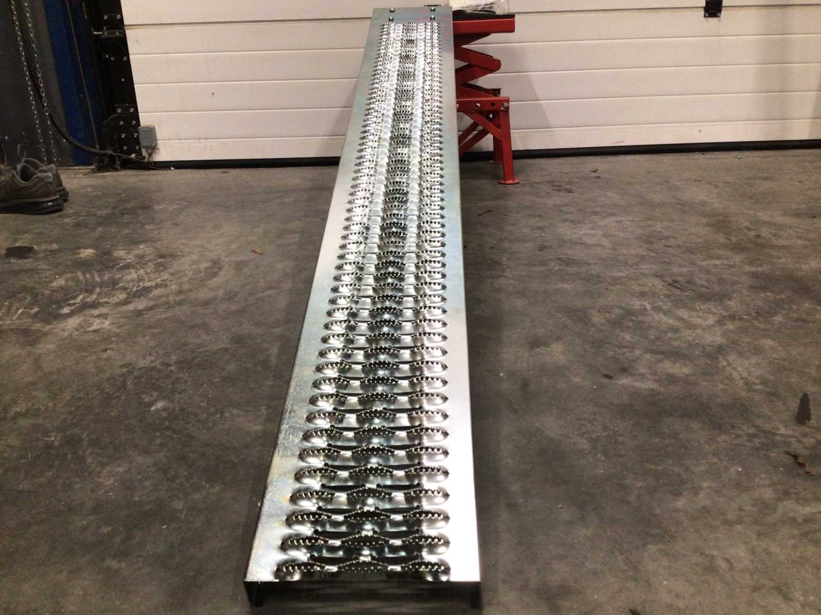 V.v. anti slipprofiel; max toelaatbaar gewicht 225 kilo. Merk: HH Model: Metalen oprijplank Gewicht: 5kg Lengte: 192cm Breedte: 24cm Hoogte: 5cm Materiaal: metaal
