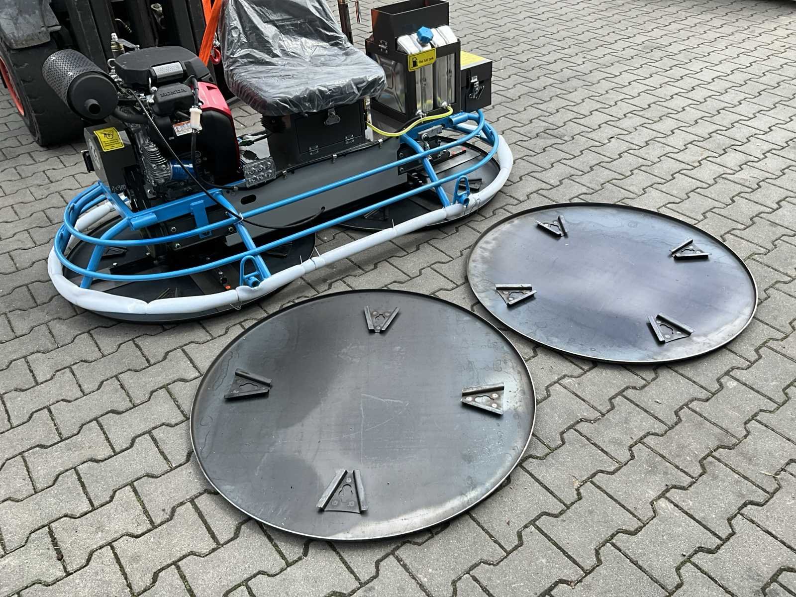 Betonnen mangaanstaal; troffelpan pan schijf; dikte 3 mm; 8 haken; diameter 960 mm; ongebruikt. (1 set = 2 stuks). Merk: Easy-Going Type: Mangaanstaal Bouwjaar: 2024 Afmeting l: 960mm Afmeting b: 960mm