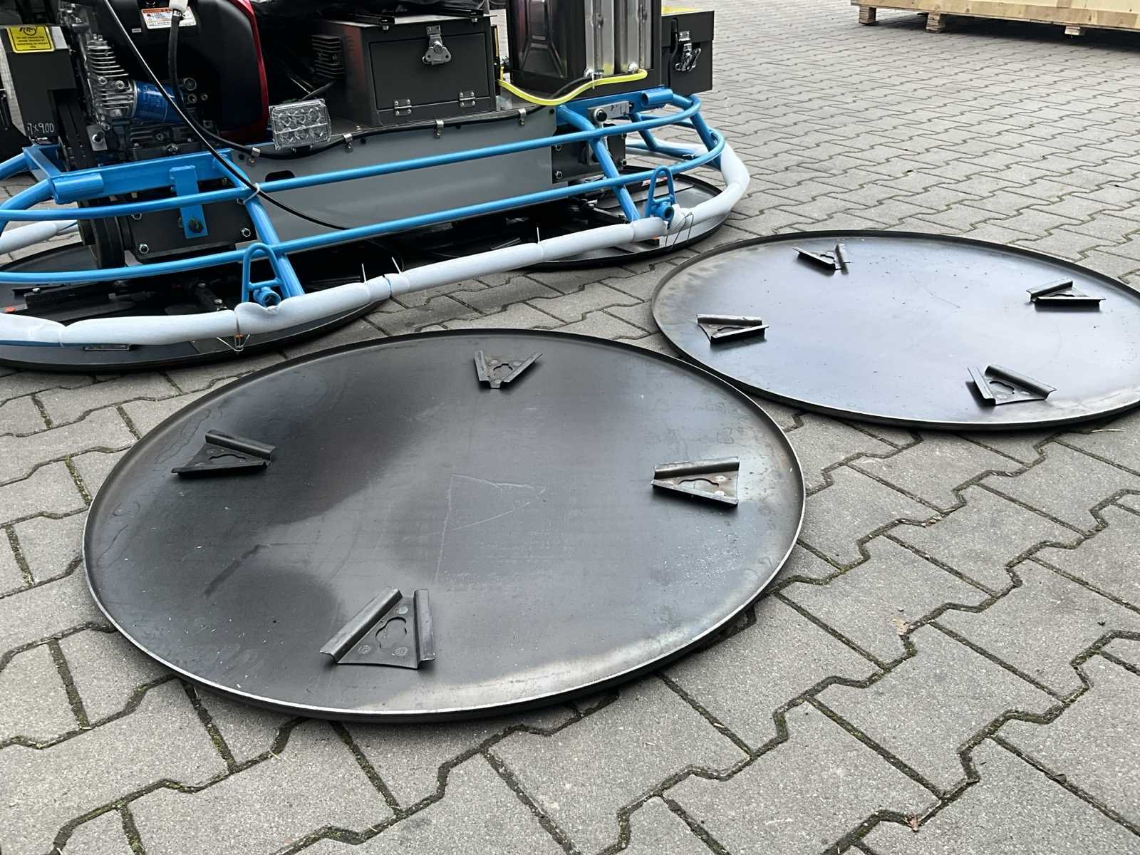 Betonnen mangaanstaal; troffelpan pan schijf; dikte 3 mm; 8 haken; diameter 960 mm; ongebruikt. (1 set = 2 stuks). Merk: Easy-Going Type: Mangaanstaal Bouwjaar: 2025 Afmeting l: 960mm Afmeting b: 960mm